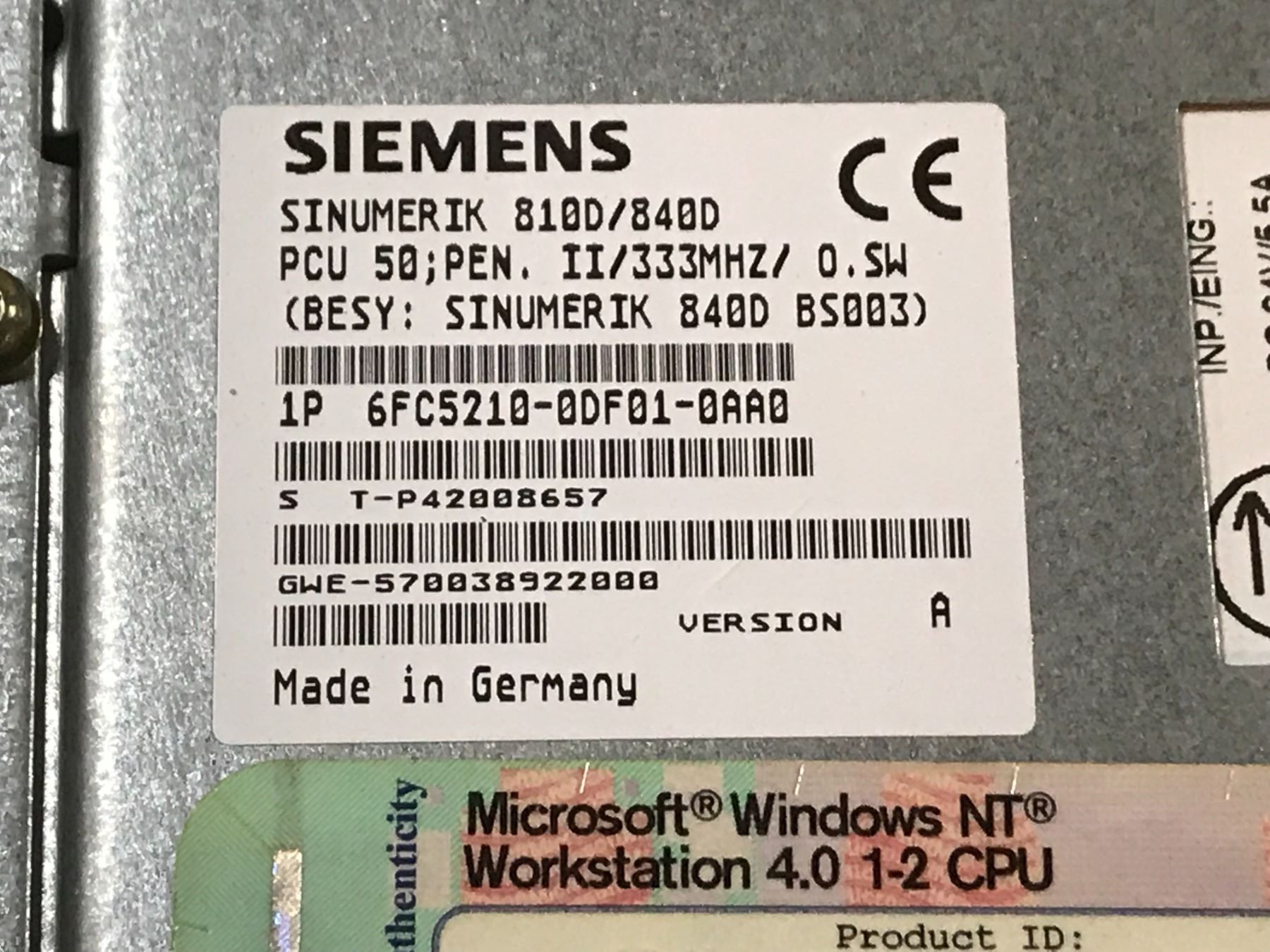 SIEMENS 6FC5210-0DF01-0AA0 PCU