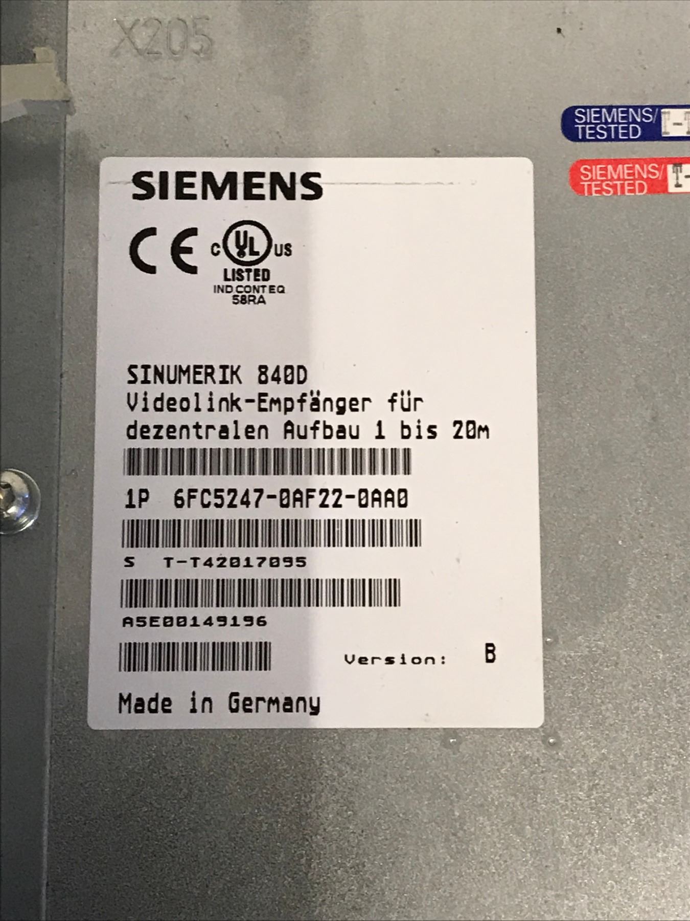 SIEMENS 6FC5247-0AF22-0AA0 VIDEO LINK RECEIVER