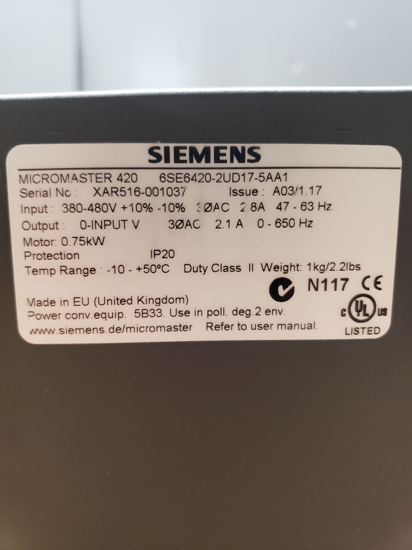 SIEMENS 6SE6420-2UD17-5AA1 Micromaster420 AC Drive