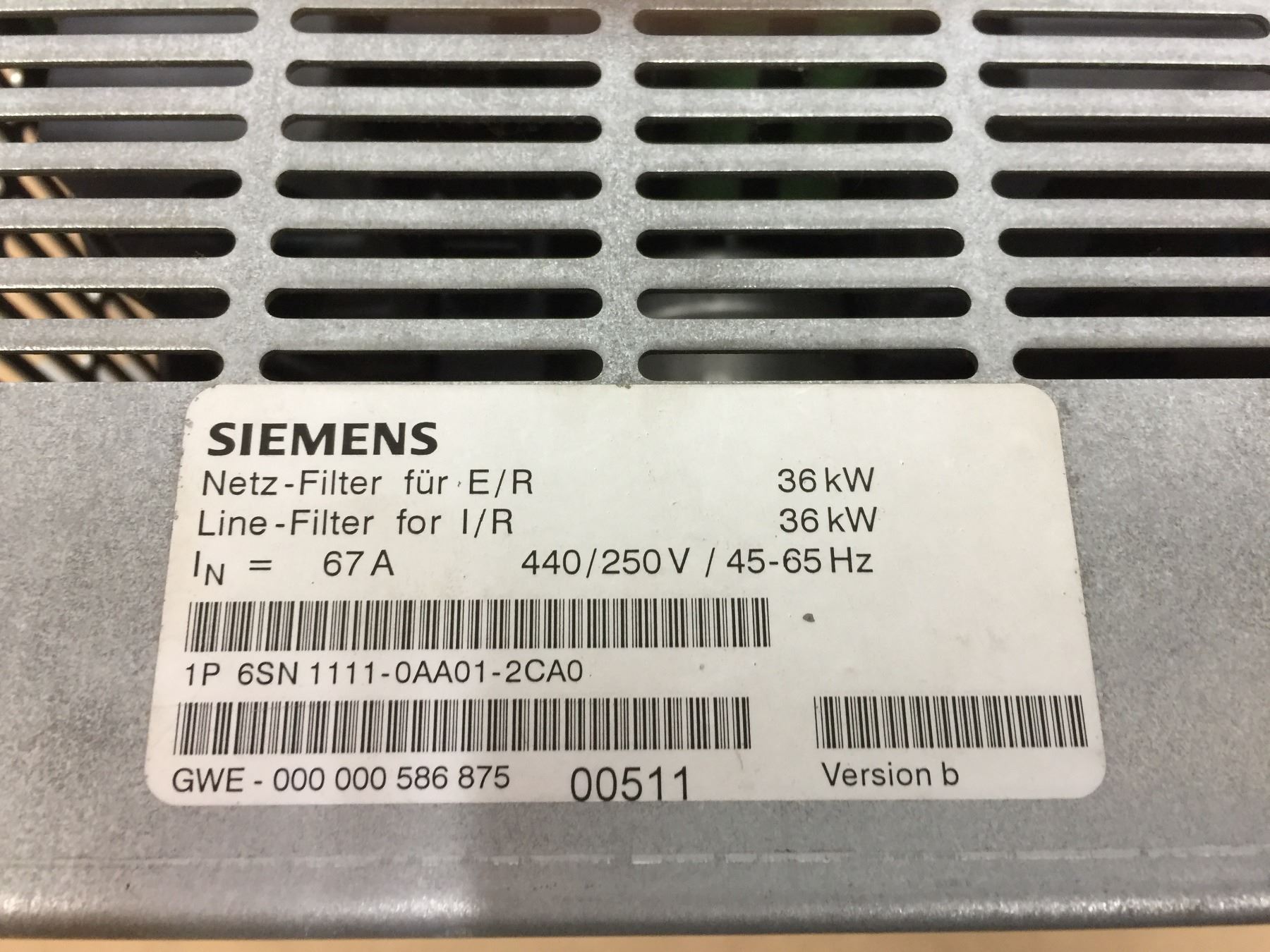 SIEMENS 6SN1111-0AA01-2CA0 LINE-FILTER