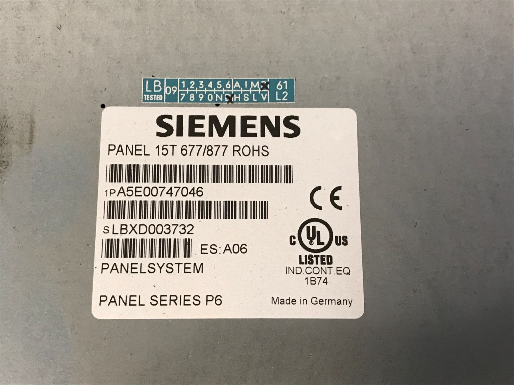 SIEMENS A5E00747046 PANEL SYSTEM TOUCH 15" PANEL SERIES P6