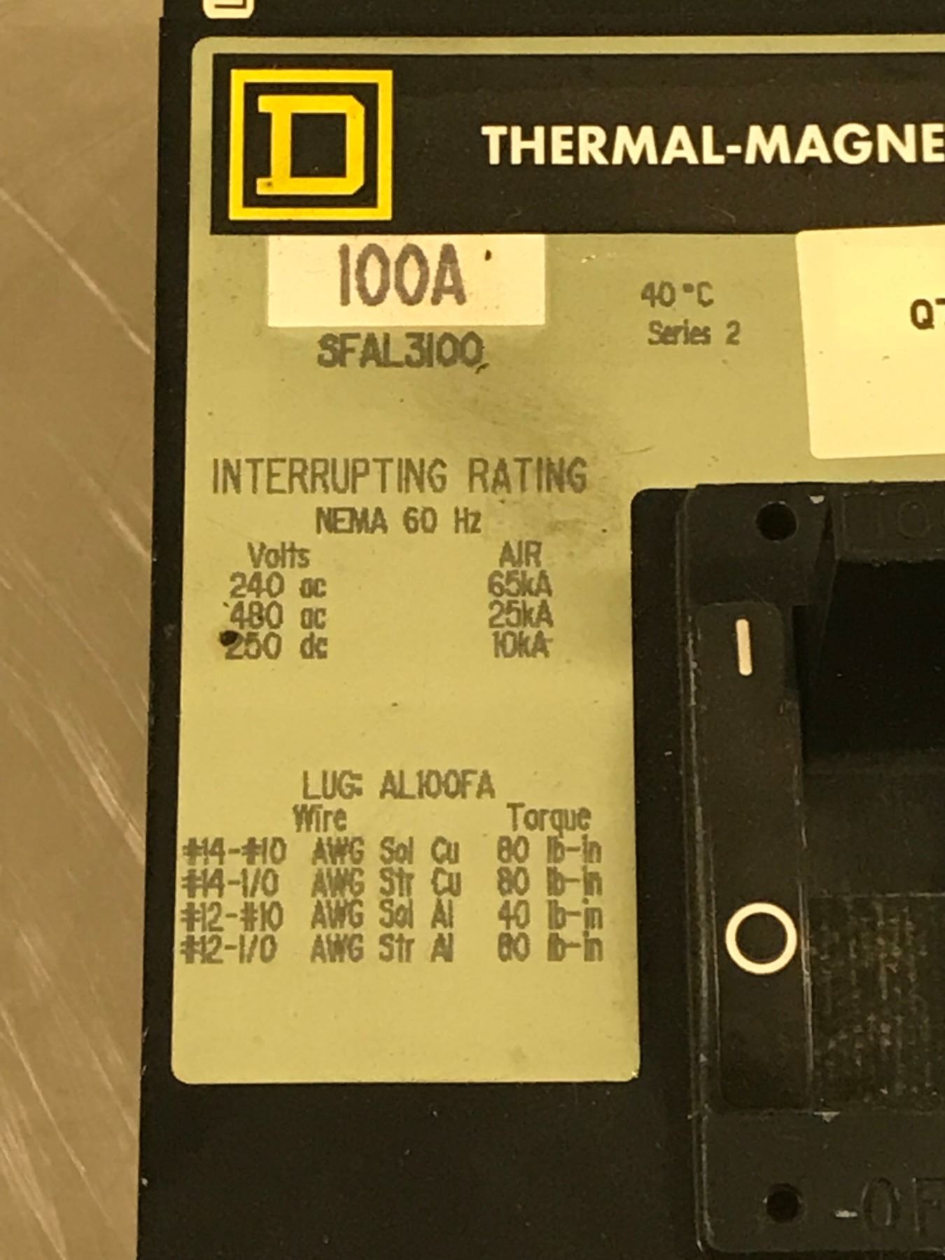 SQUARE D CONTACTOR SFAL3100 3 POLE