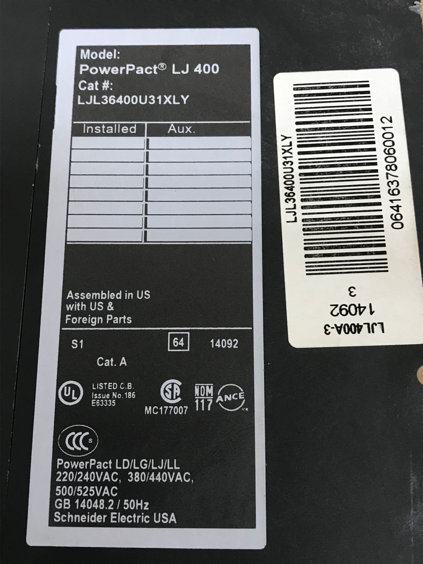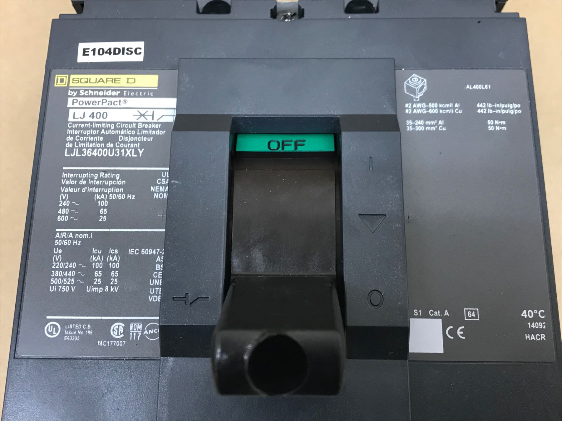 SQUARE D LJ 400 CIRCUIT BREAKER