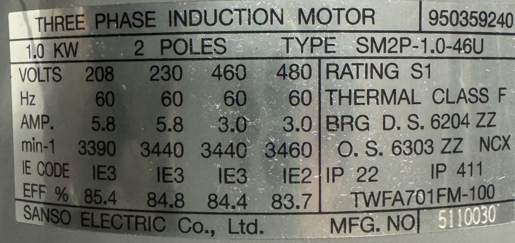 Sanso Electric #SM2P-1.0-46U Motor