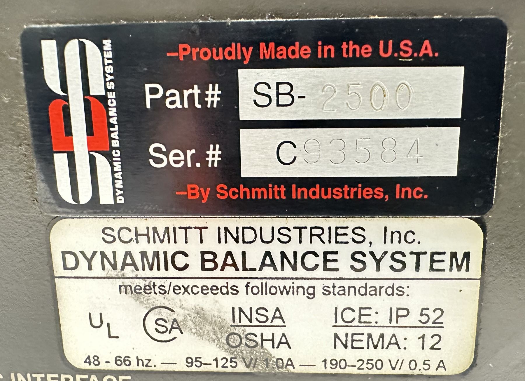 Schmitt Industries Dynamic Balance System #SB-2500 Controller