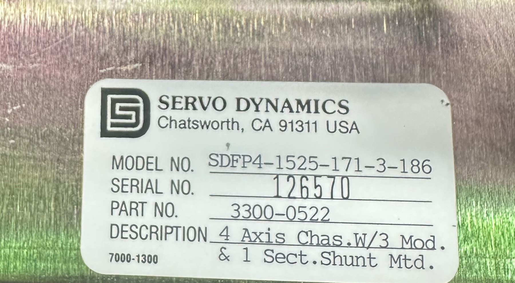 Servo Dynamics #3300-0522 / SDFP4-1525-171-3-186 Chassis w/Circuit Boards