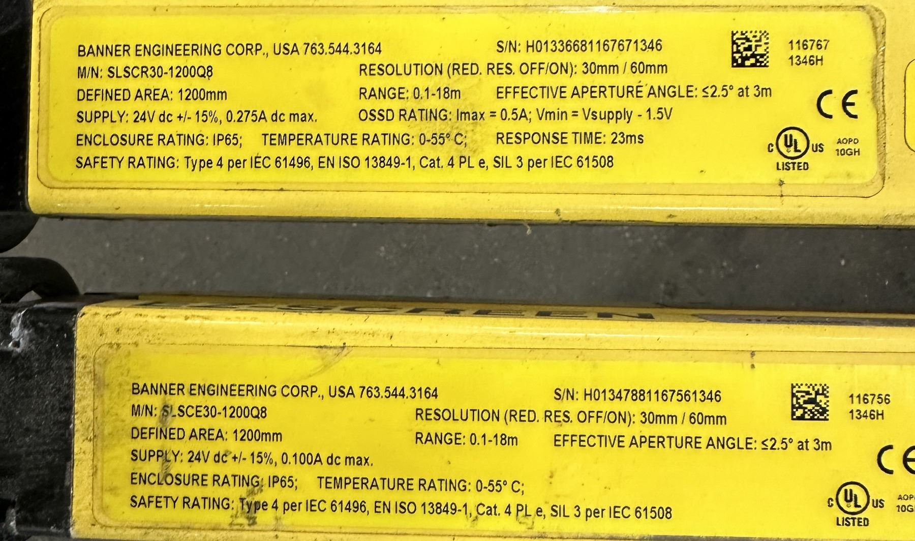 Set of Banner #SLSC30-1200Q8 EZ-Screen Safety Light Curtains