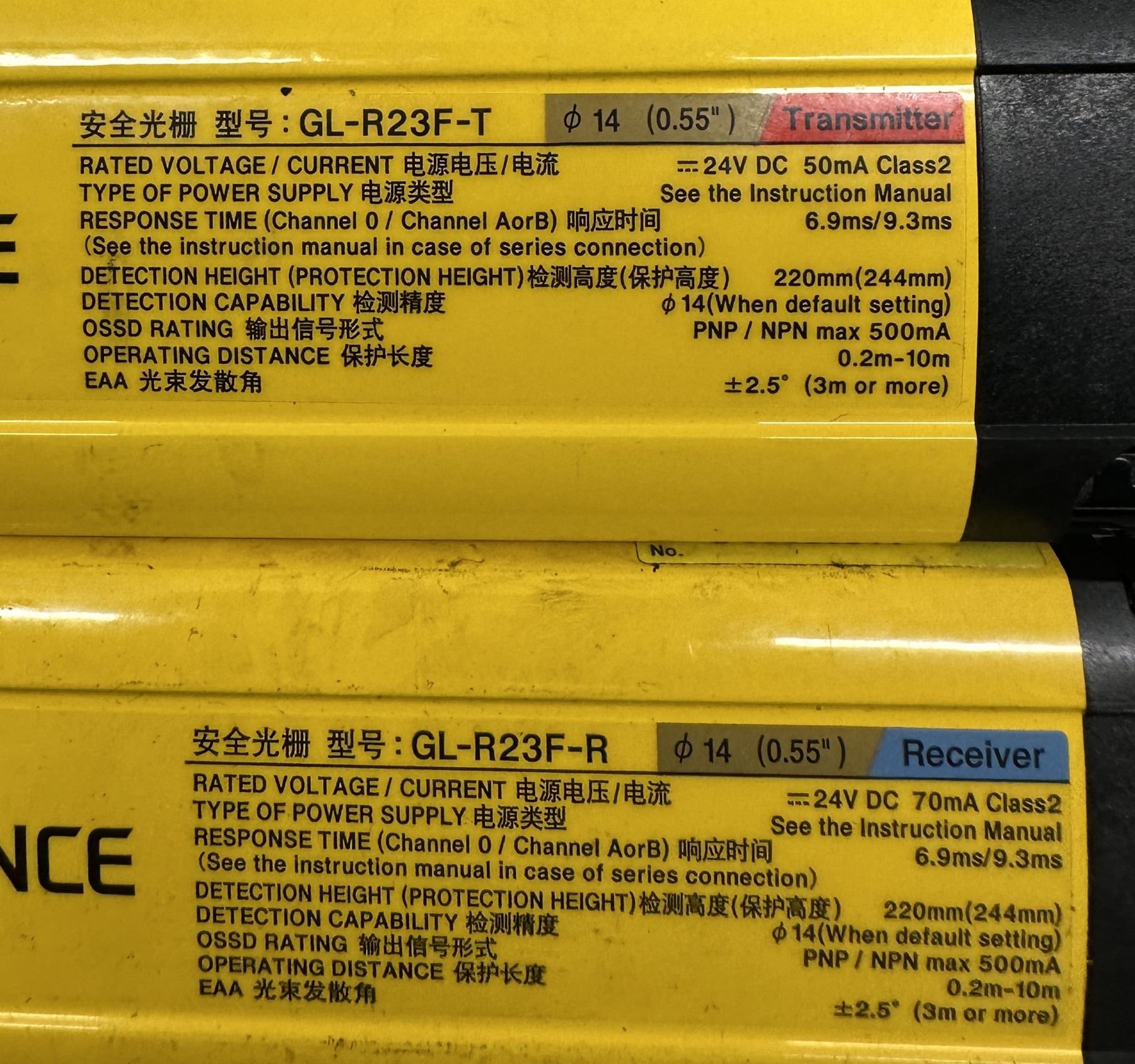 Set of Keyence #GL-R23F Safety Light Curtains