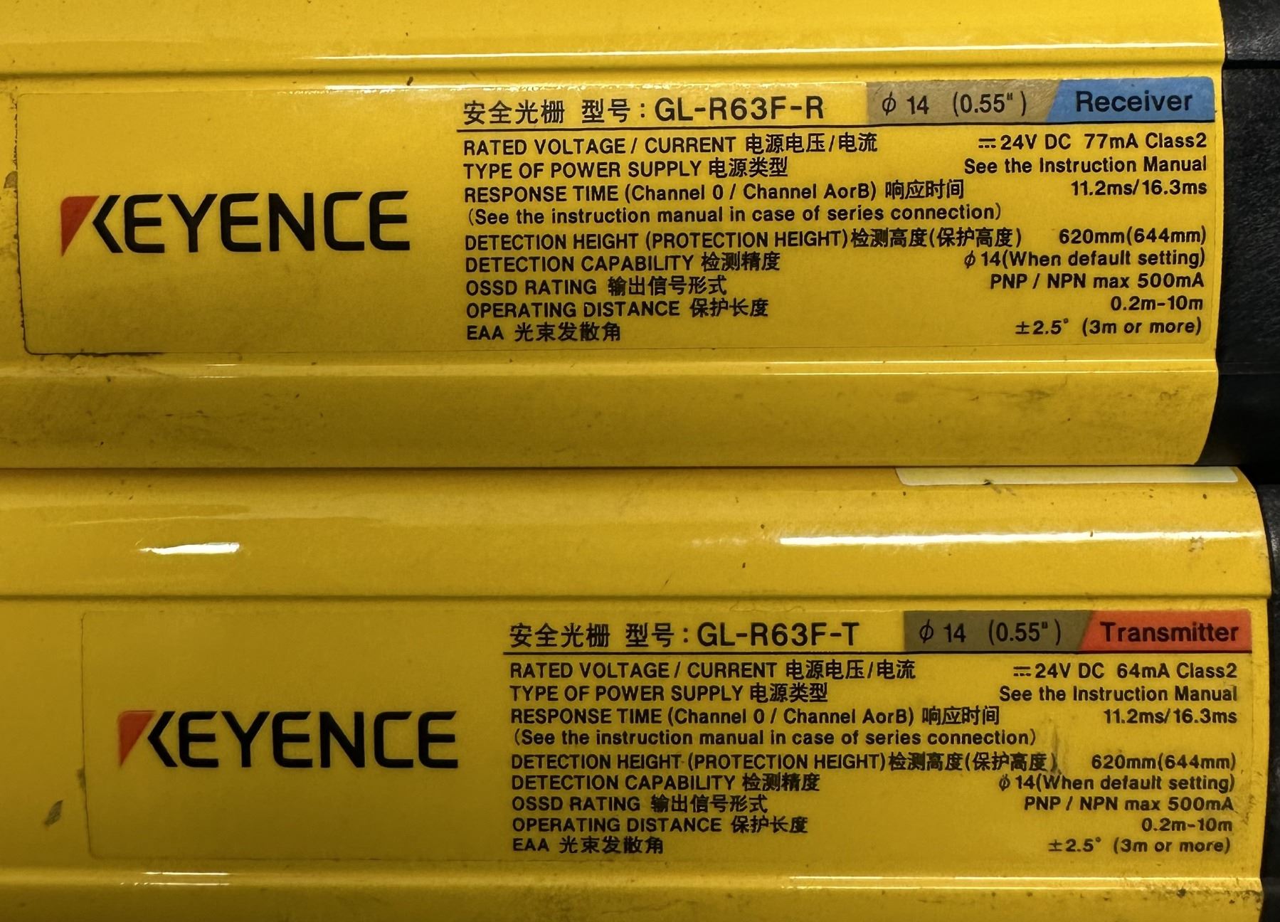 Set of Keyence #GL-R63F Safety Light Curtains
