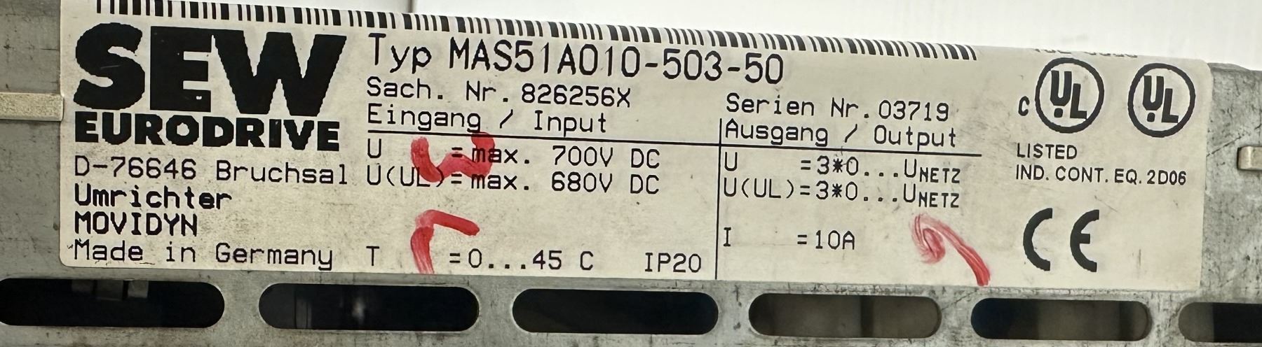 Sew #MAS51A010-503-50 Movidyn 10 Amp Drive