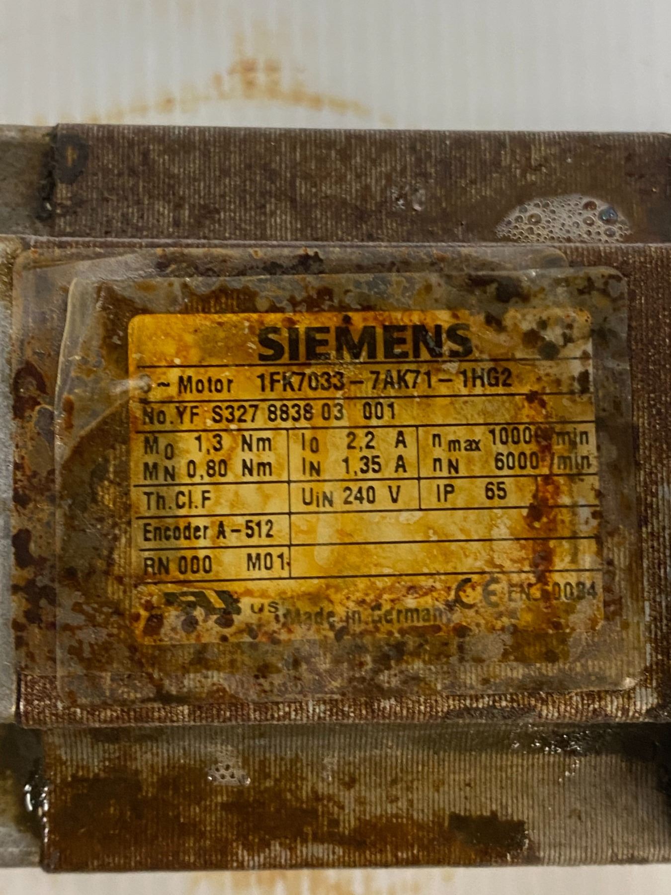 Siemens # 1FK7033-7AK71-1HG2 Motor