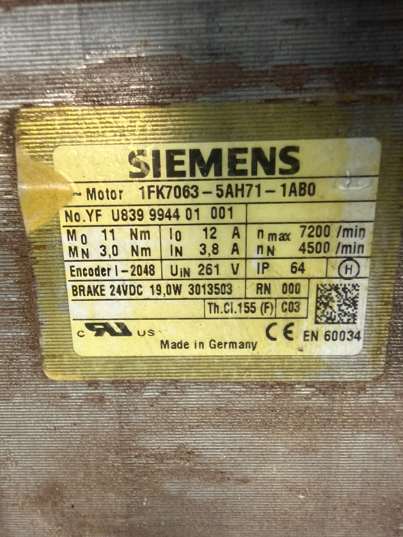 Siemens #1FK7063-5AH71-1AB0 Servo Motor