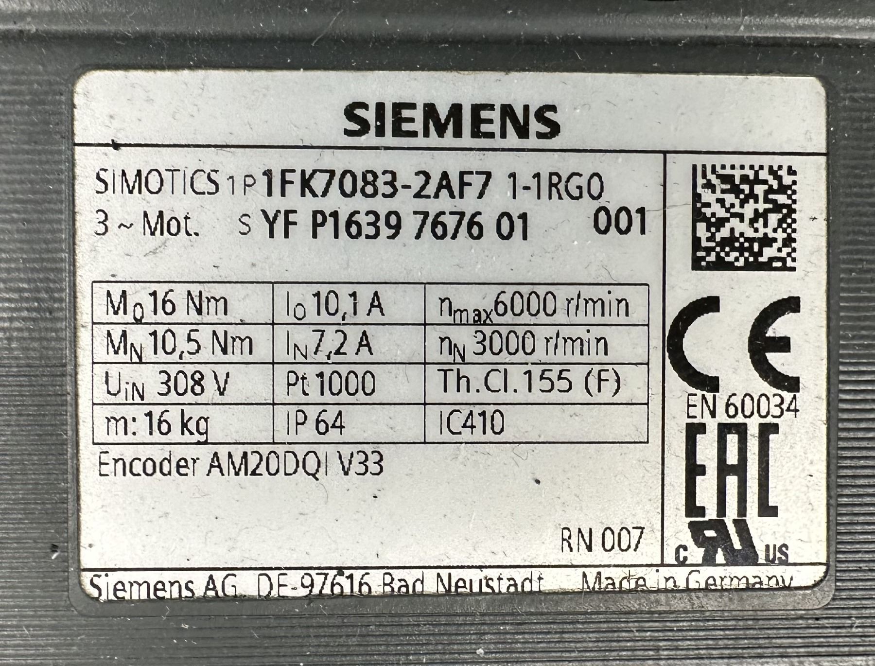 Siemens #1FK7083-2AF1 1-1RGO Motor