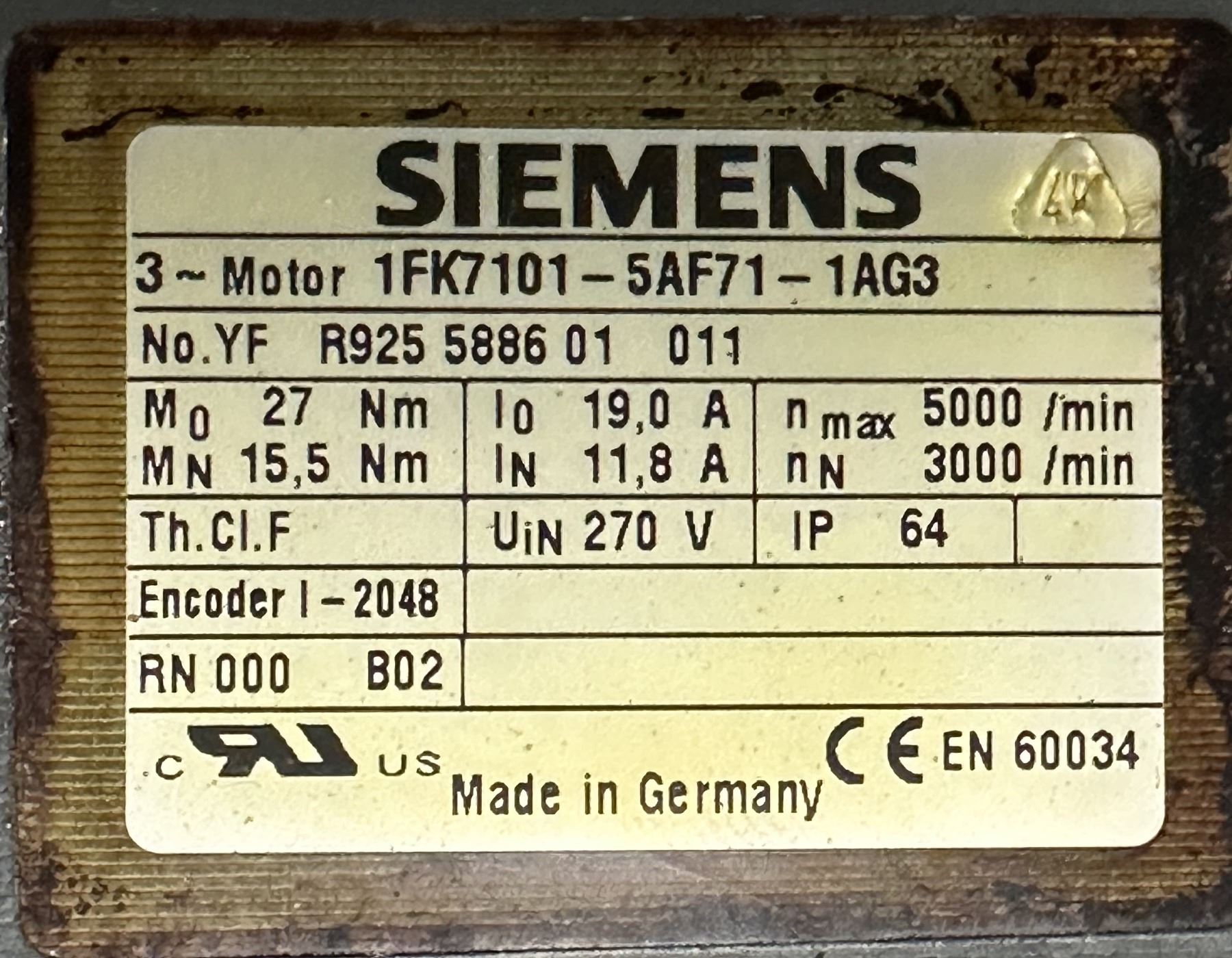 Siemens #1FK7101-5AF71-1AG3 3~Motor