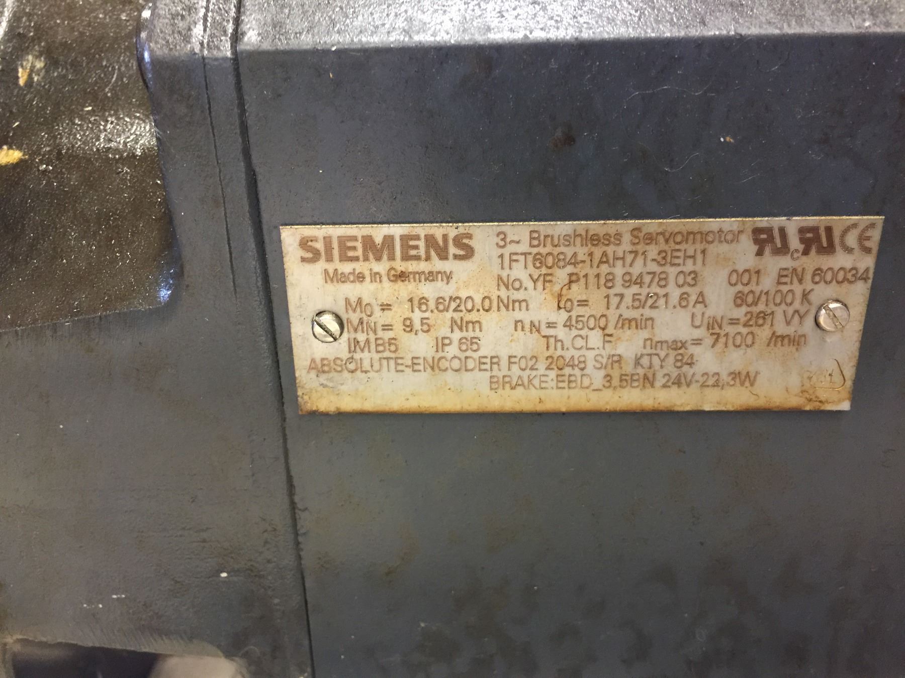 Siemens 1FT6084-1AH71-3EH1 Brushless Servomotor