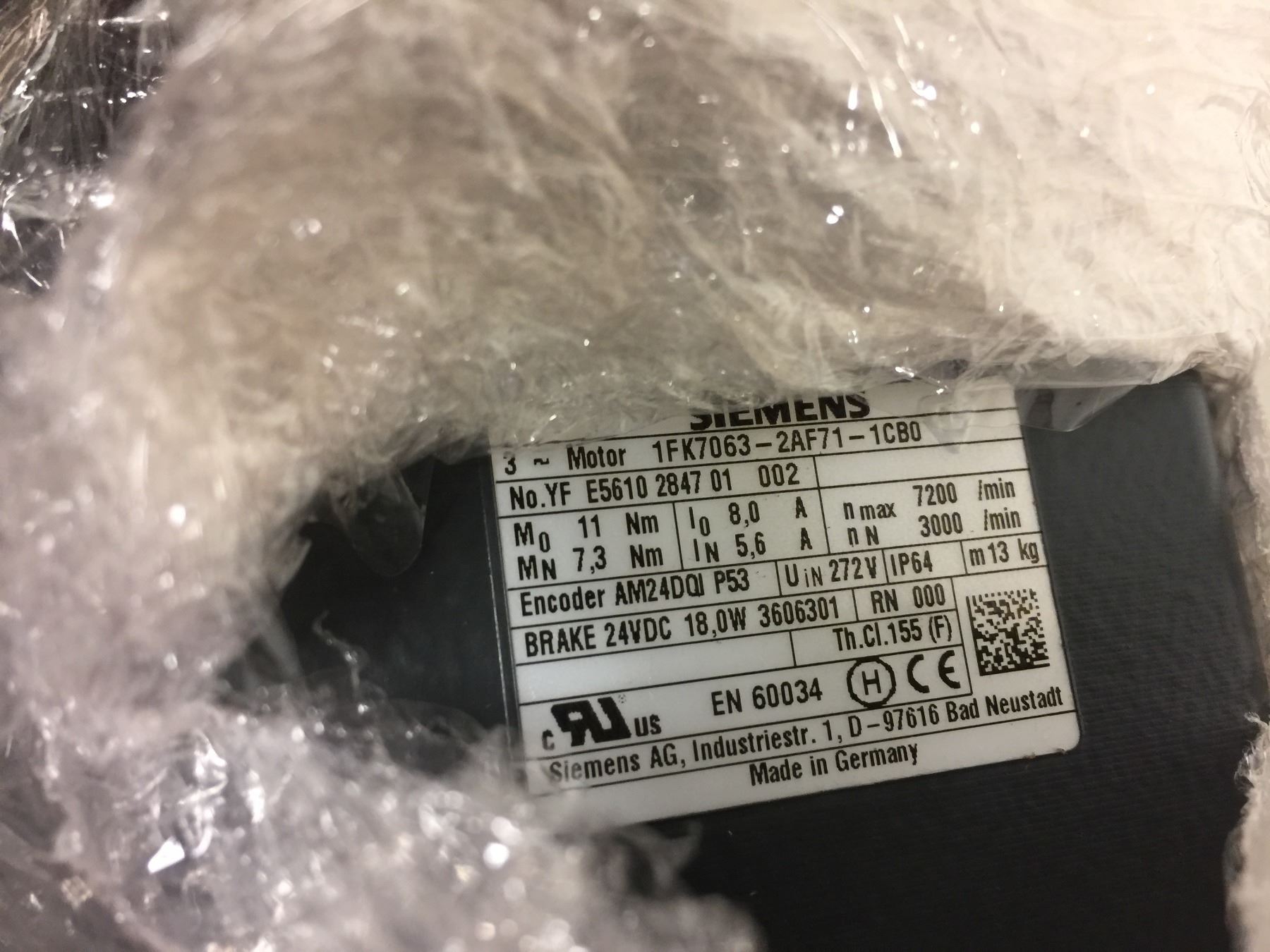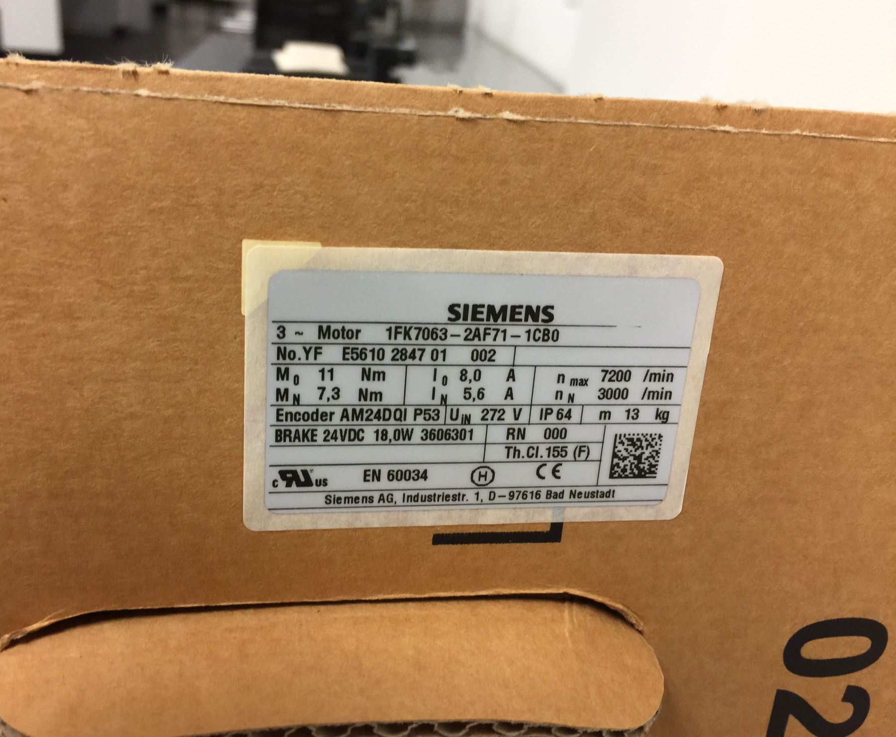 Siemens 1P 1FK7063-2AF71-1CB0 3 Phase Motor NEW