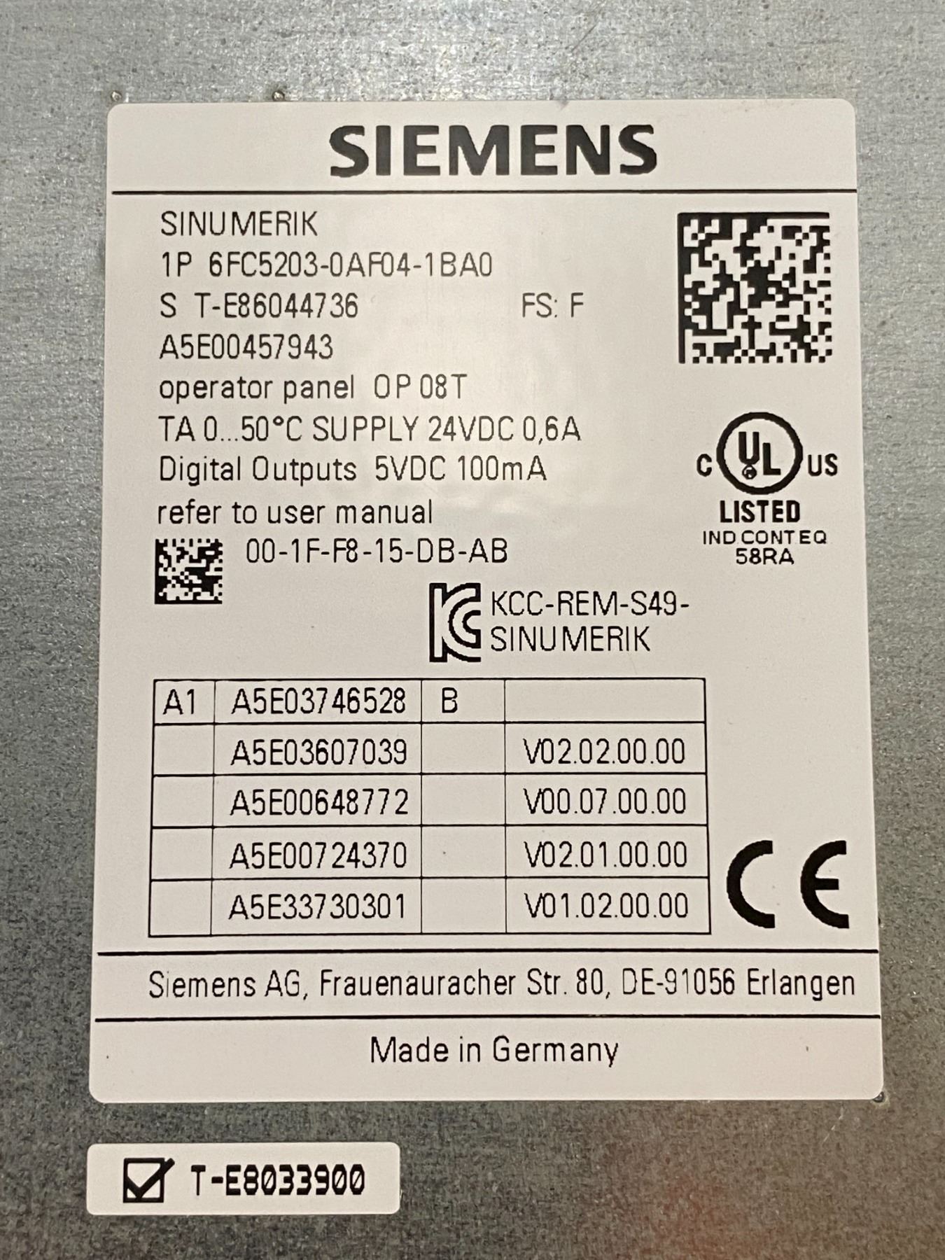 Siemens # 1P 6FC5203-0AF04-1BA0 Operator Panel
