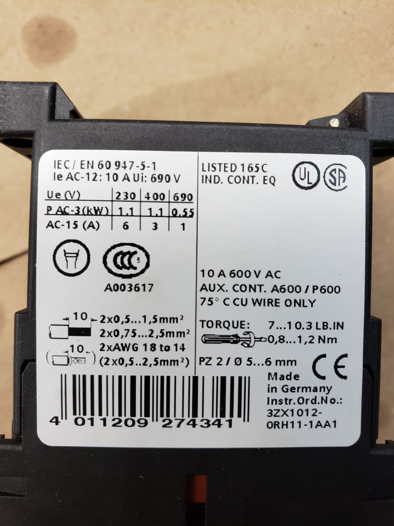 Siemens 3RH1140-1BB40 Circuit Breaker