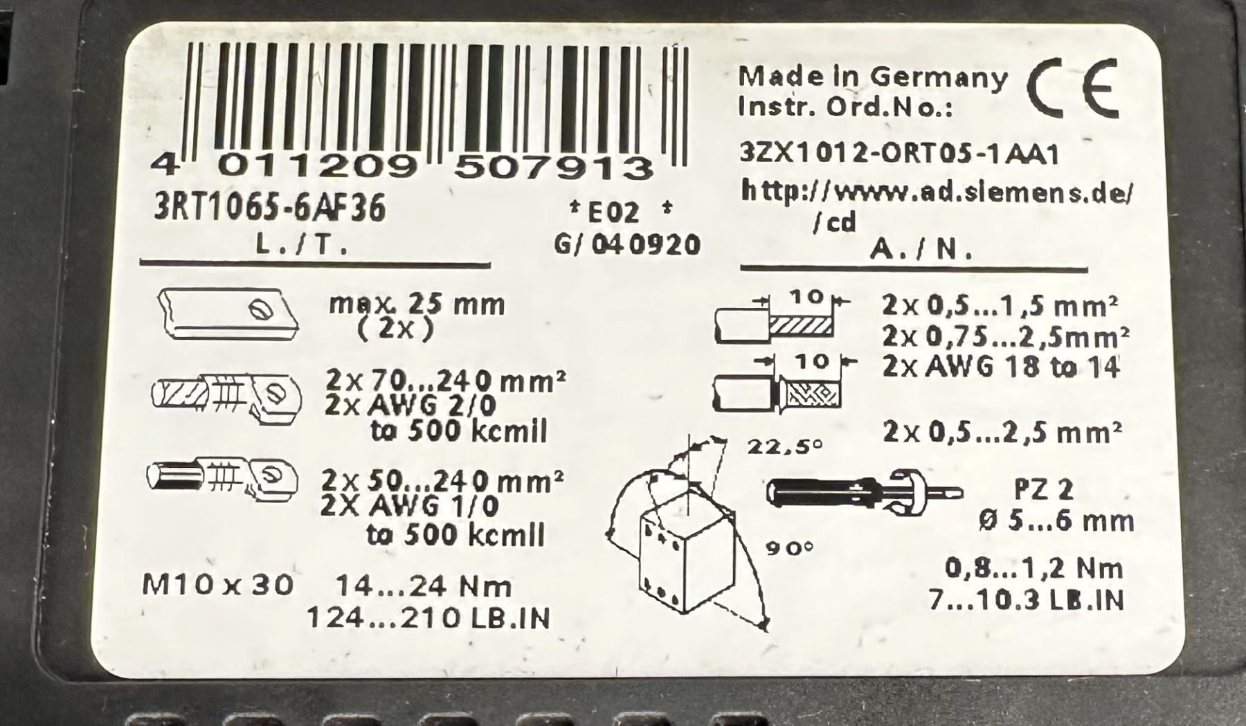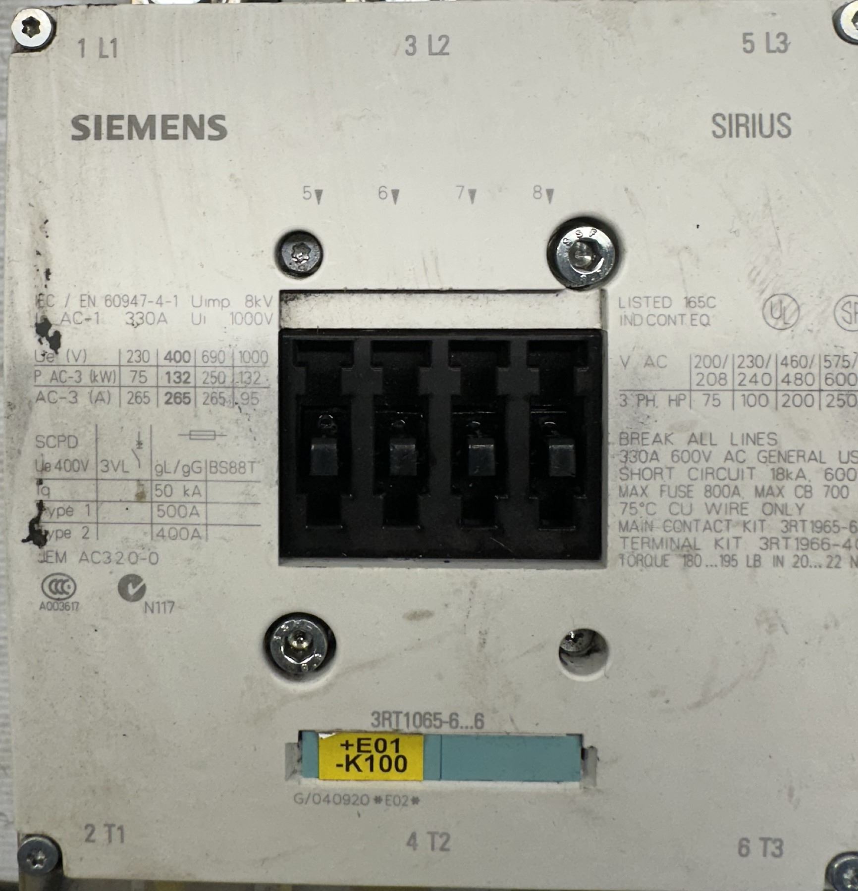 Siemens #3RT1065-6AF36 Motor Starter Contactor