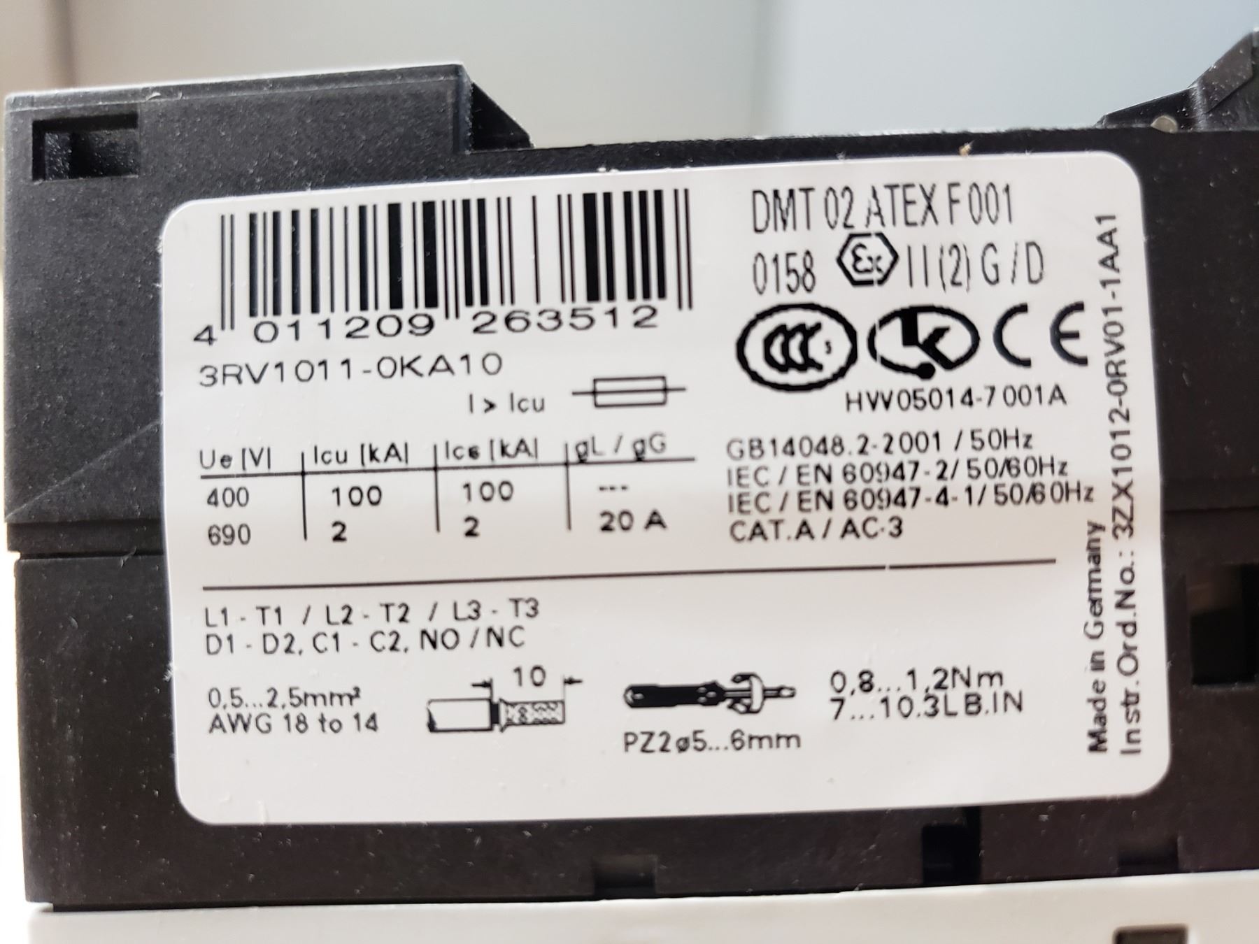 Siemens 3RV1011-0KA10 Circuit Breaker