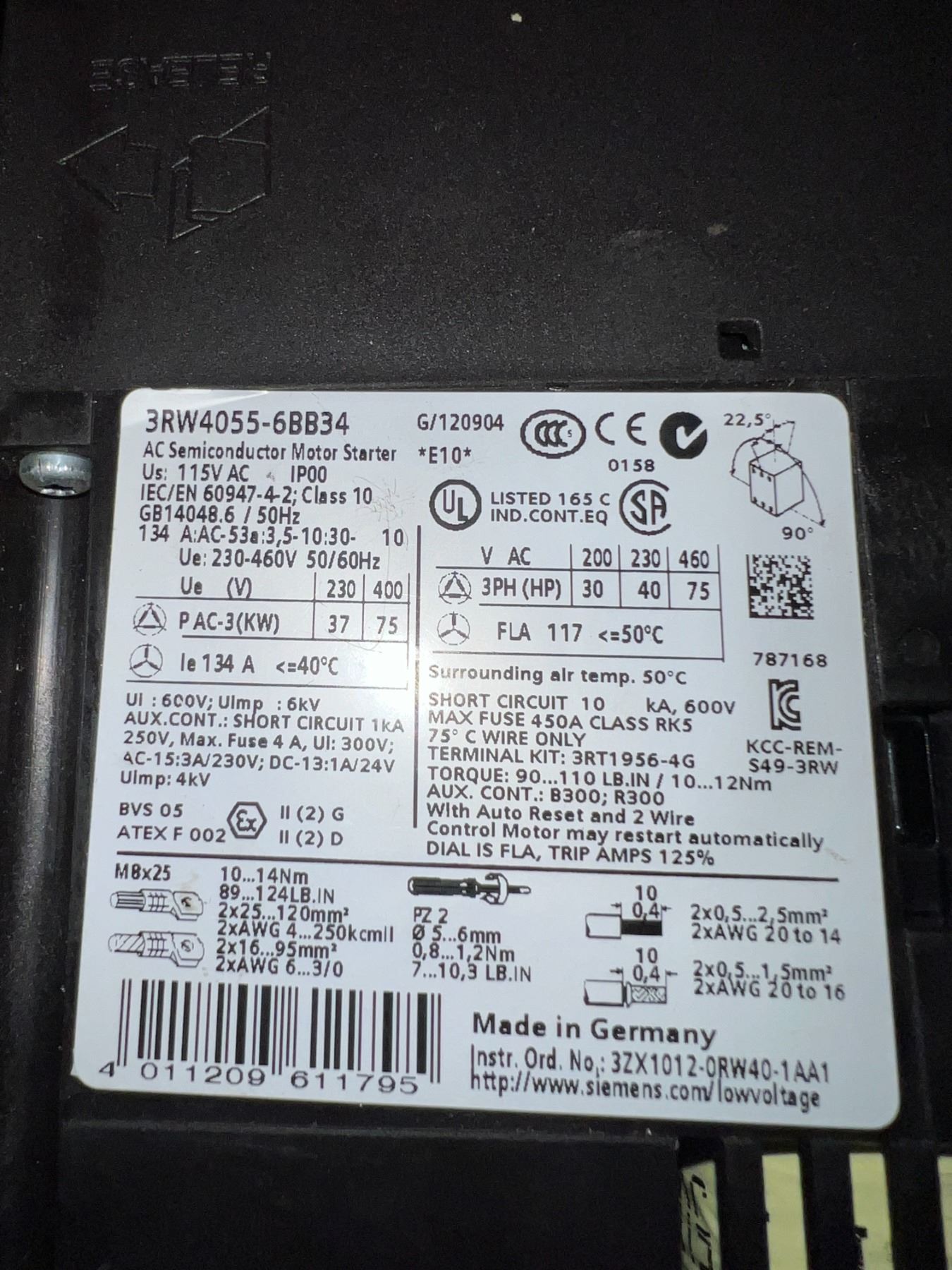 Siemens #3RW4055-6BB34 Soft Starter