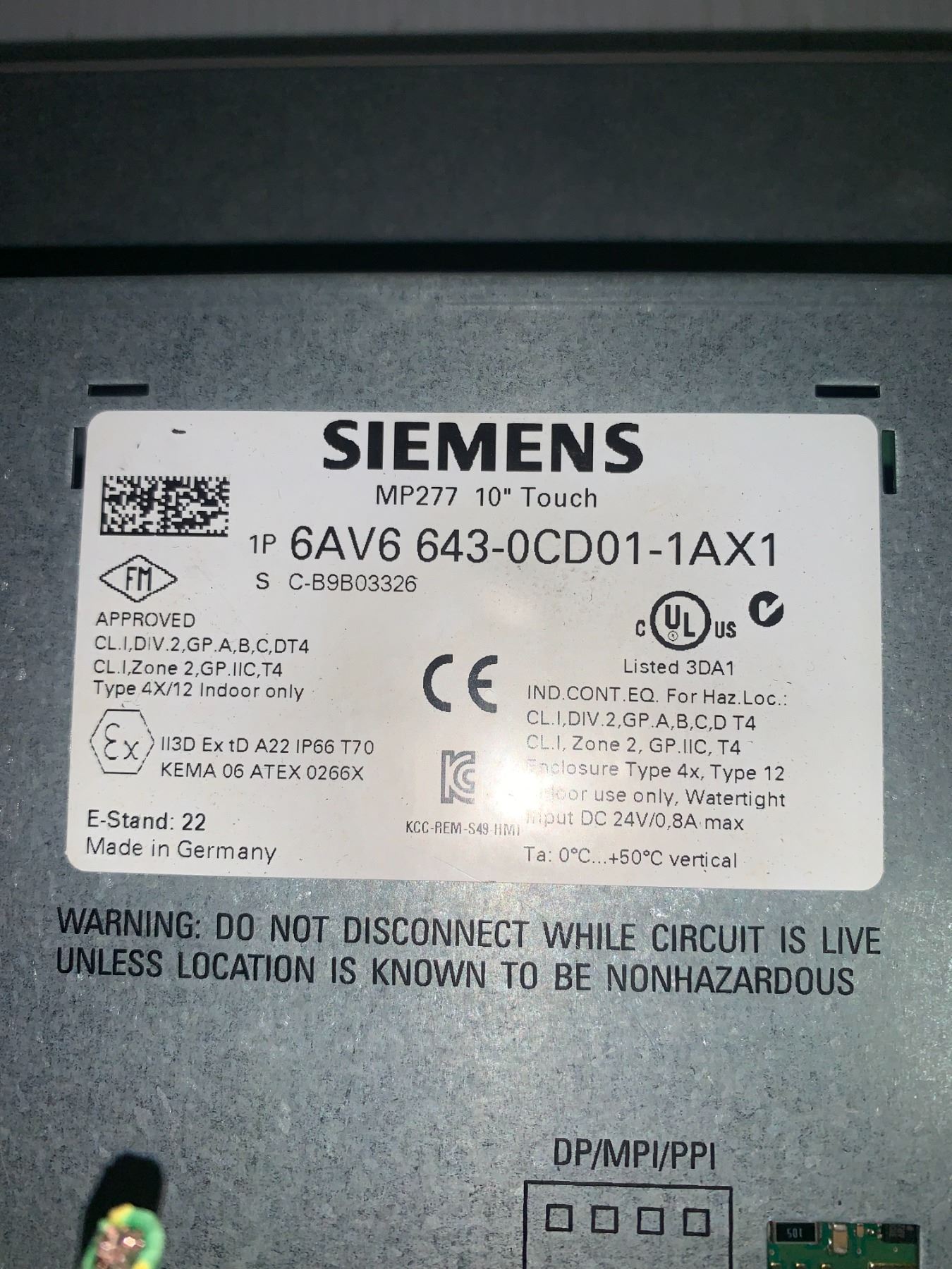 Siemens # 6AV6 643-0CD01-1AX1 Screen