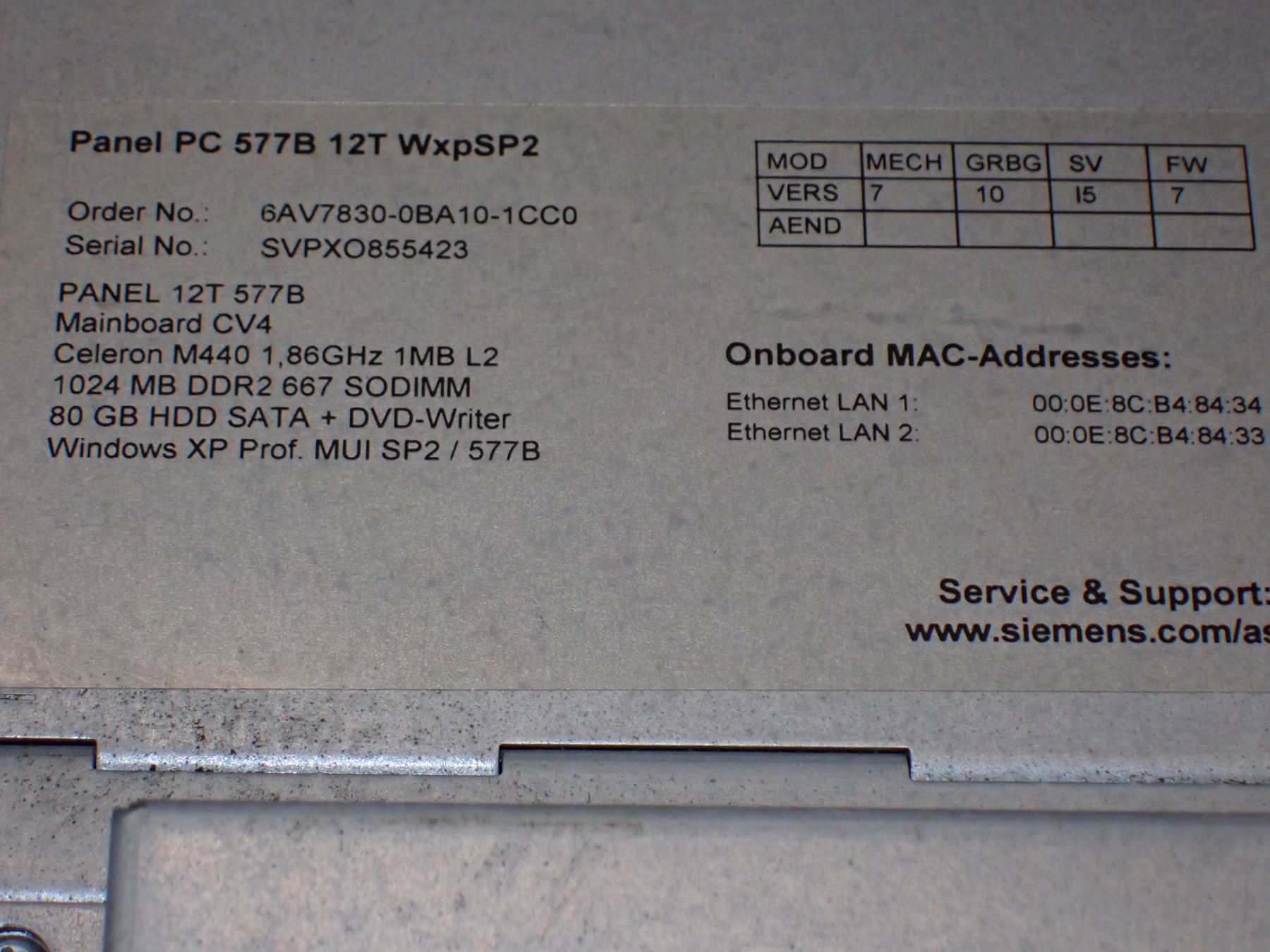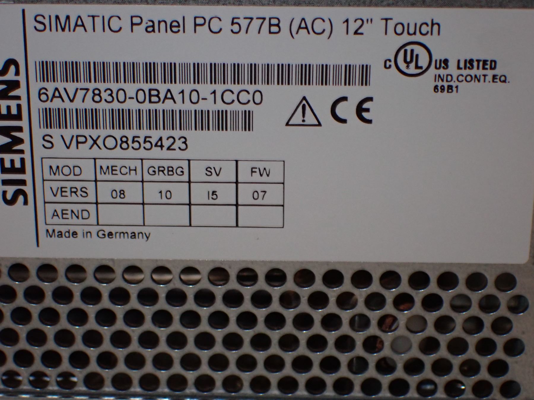 Siemens # 6AV7830-0BA10-1CC0 Simatic Panel PC