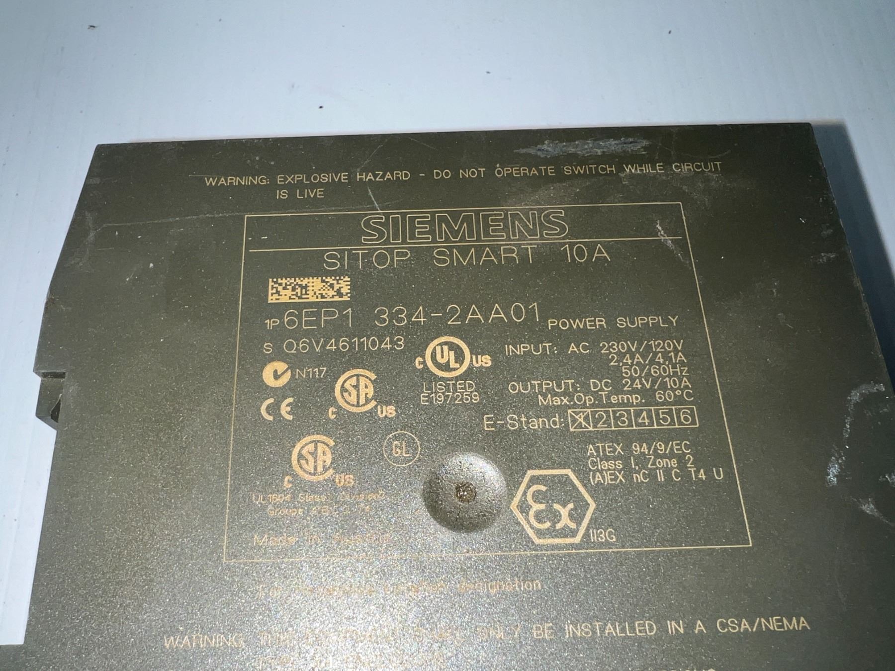 Siemens #6EP1 334-2AA01 SITOP Smart 10A Power Supply