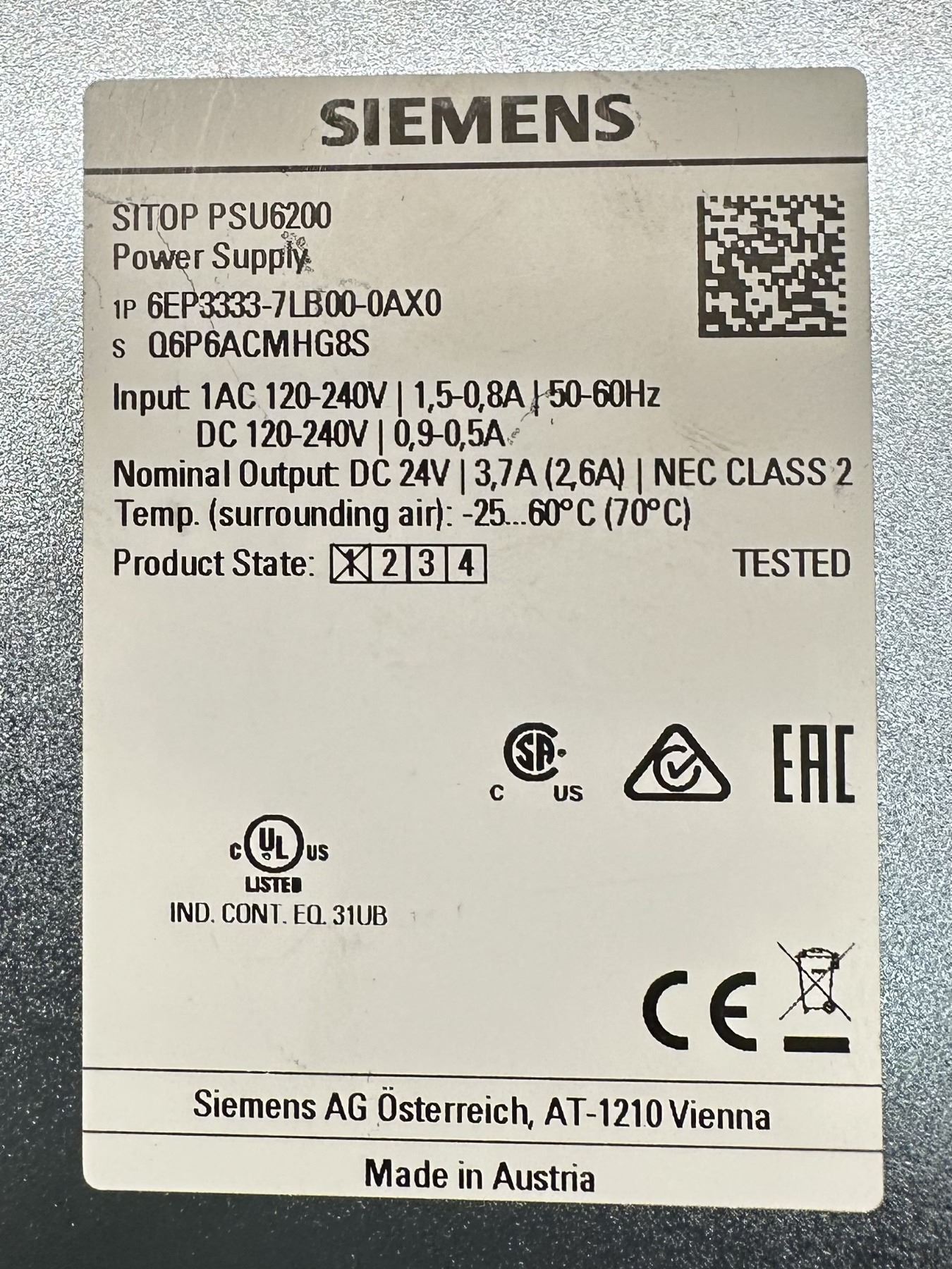 Siemens #6EP3333-7LB00-0AX0 SITOP PSU6200 Power Supply