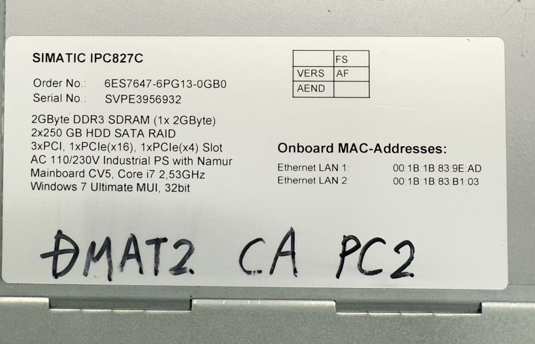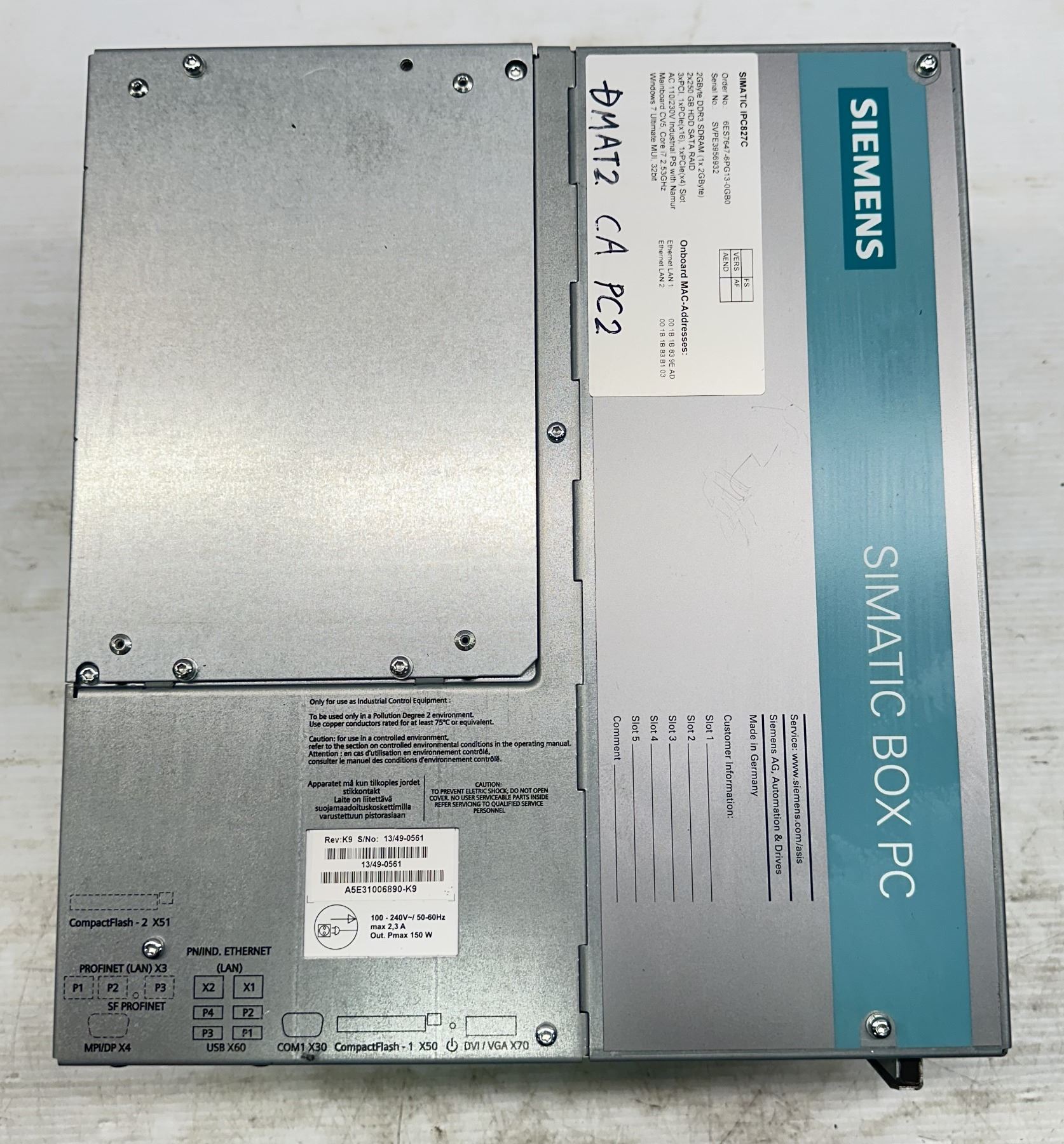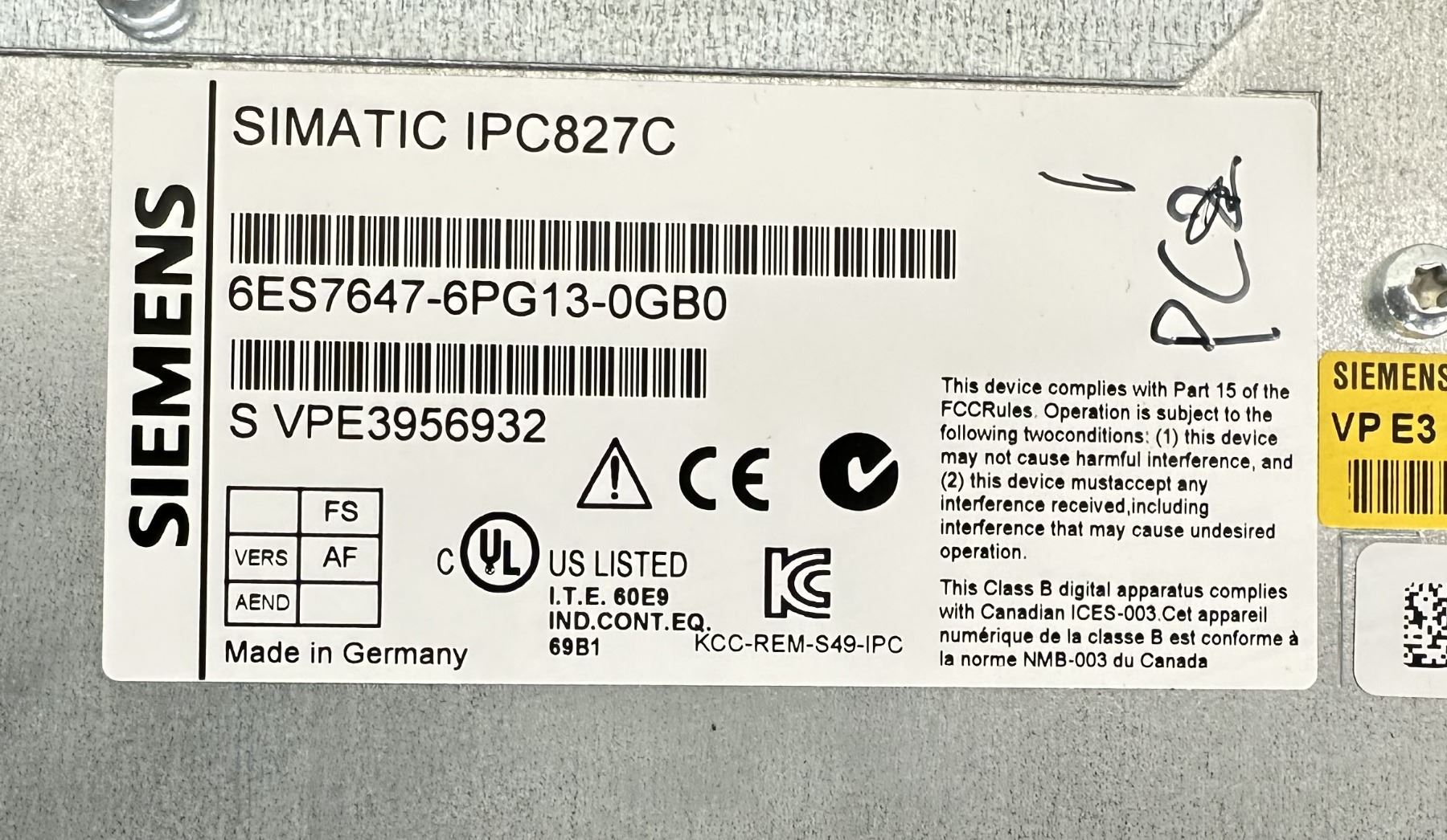 Siemens #6ES7647-6PG13-0GB0 Simatic IPC827C /#A5E31006890-K9