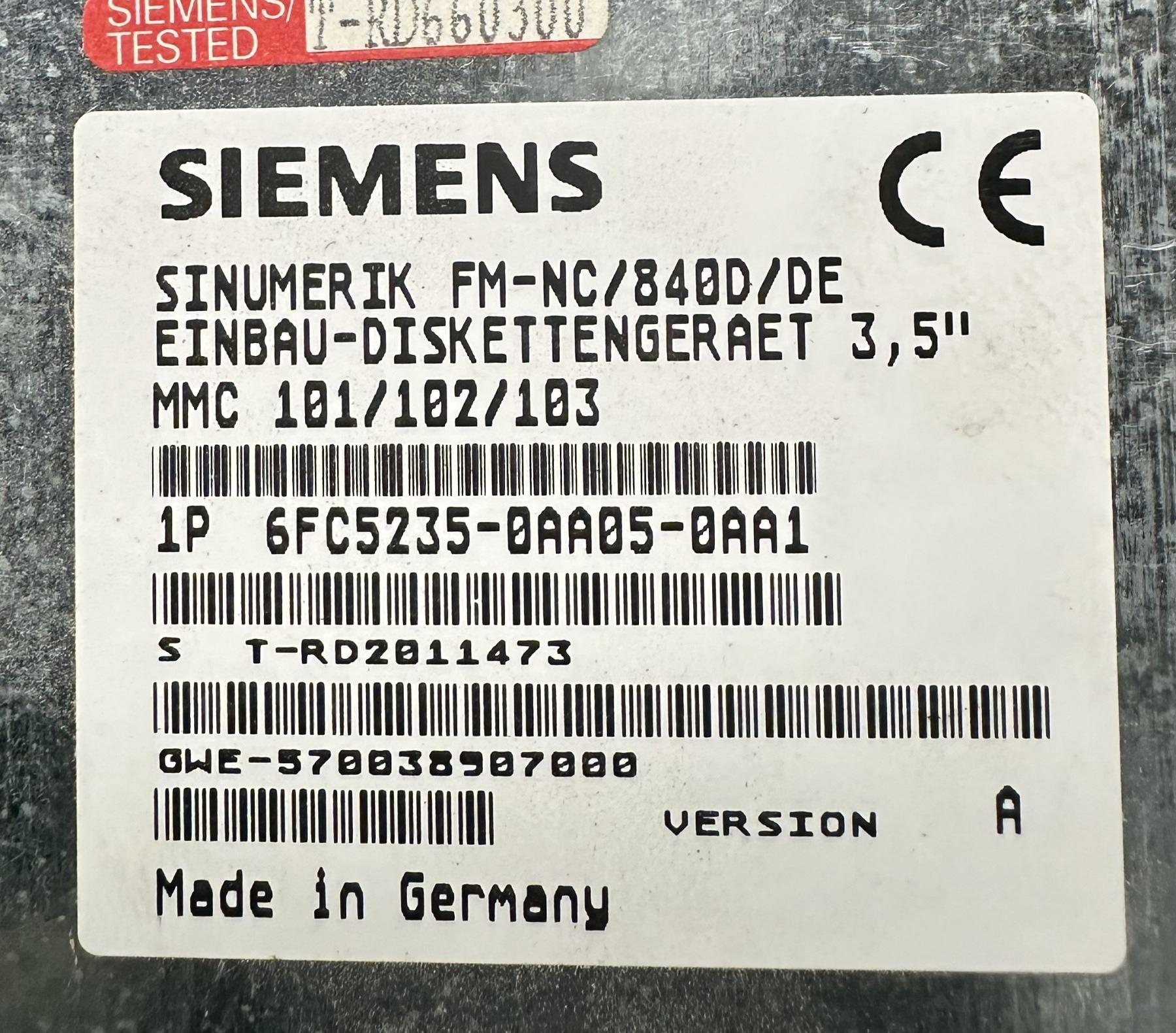Siemens #6FC5235-0AA05-0AA1 Sinumerik FM-NC/840D/DE Floppy Disk Unit