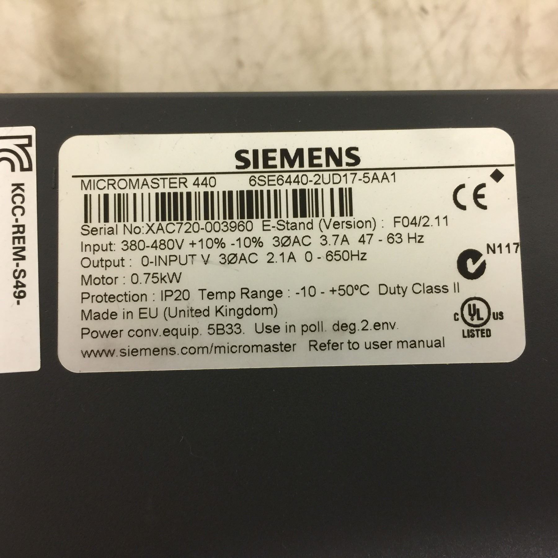 Siemens 6SE6440-2UD17-5AA1 Micromaster 440