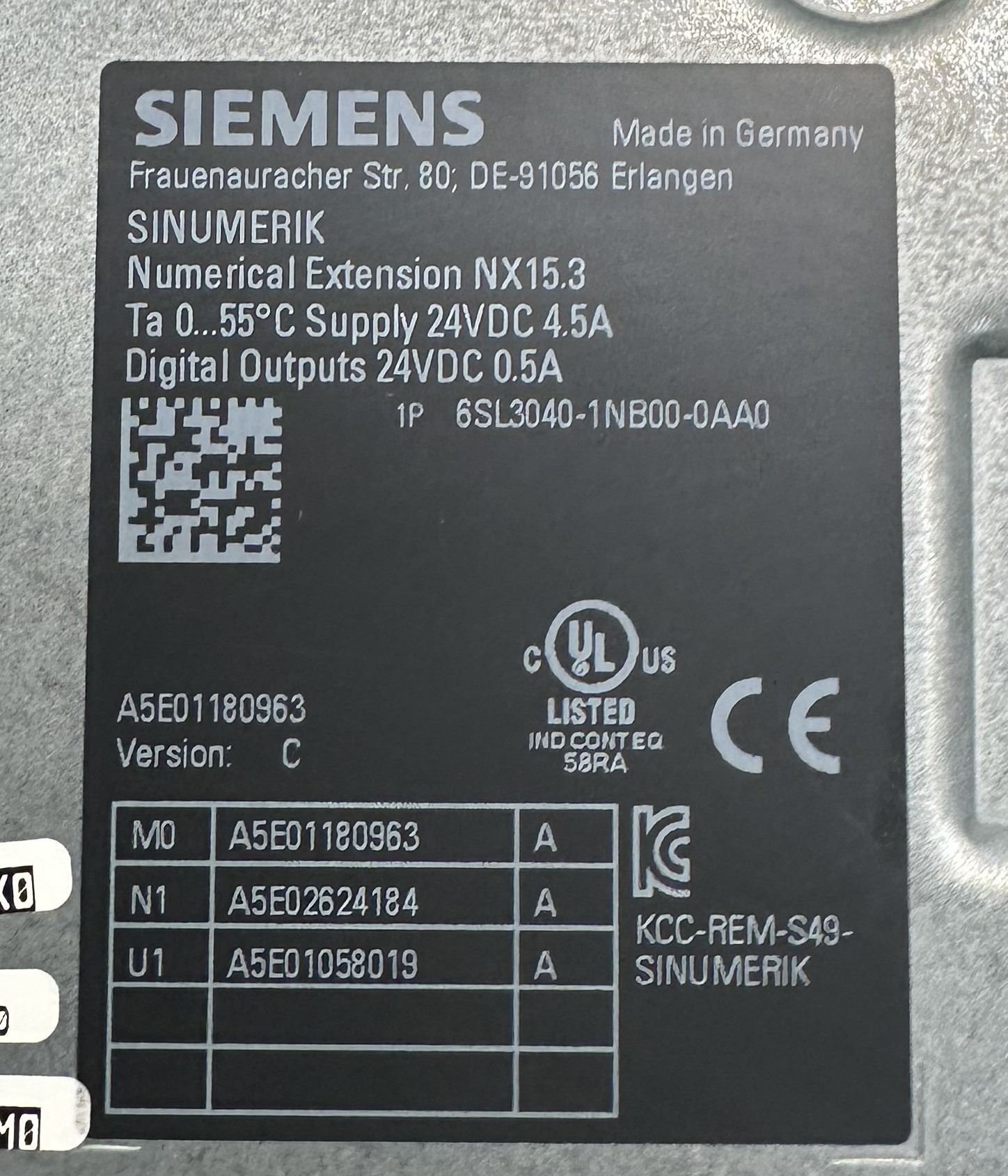 Siemens #6SL3040-1NB00-0AA0 Numerical Extension NX15.3