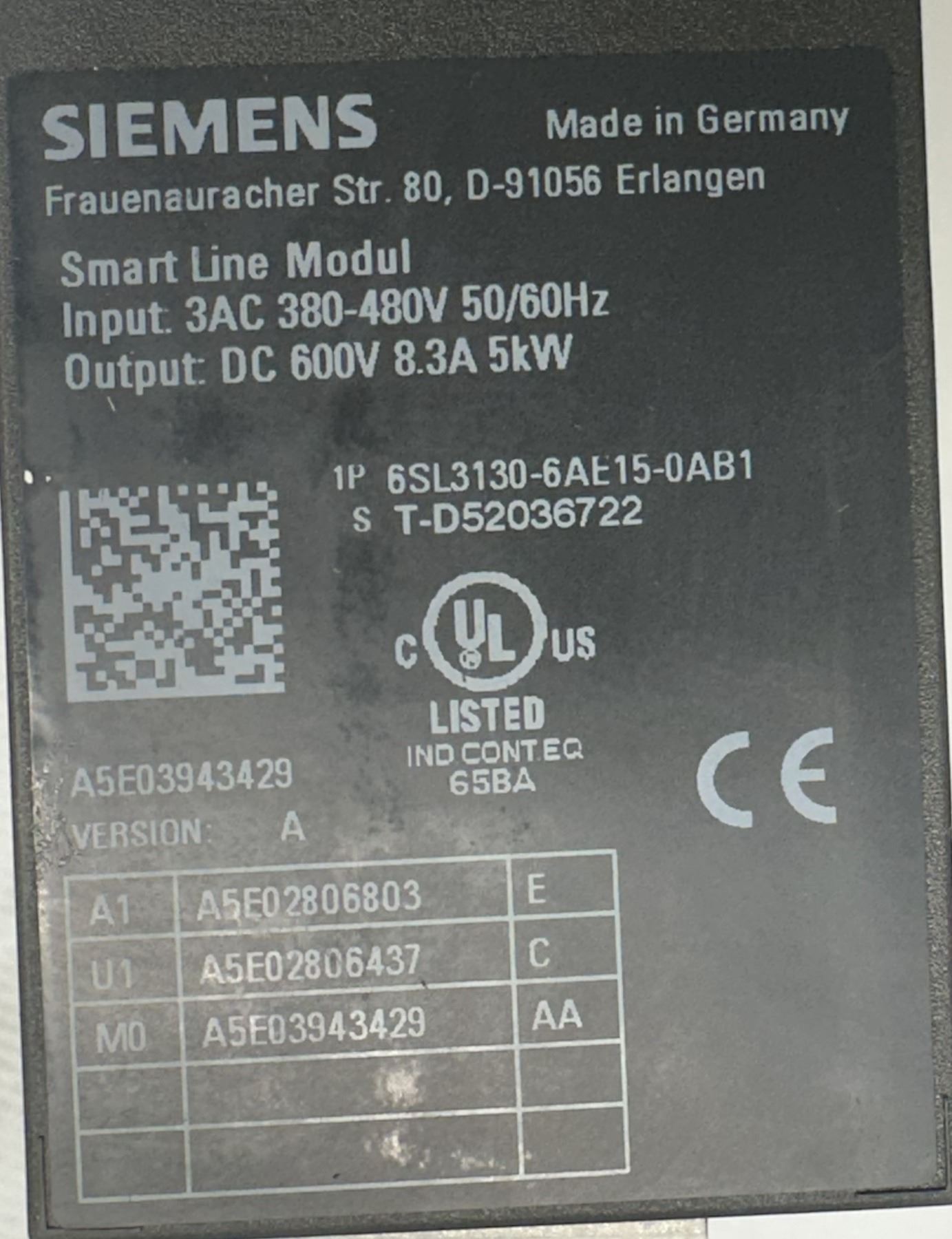 Siemens #6SL3130-6AE15-0AB1 Smart Line Module