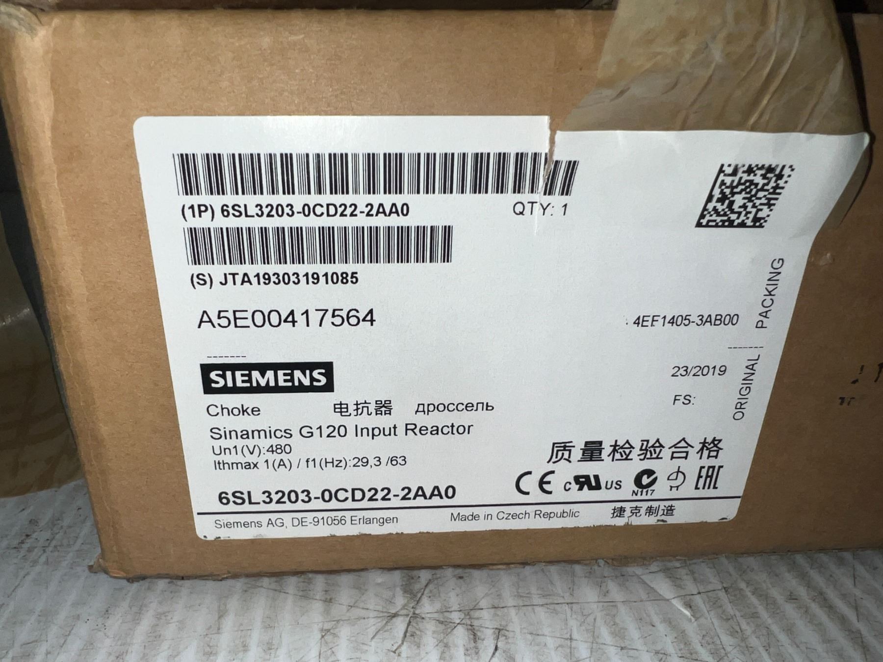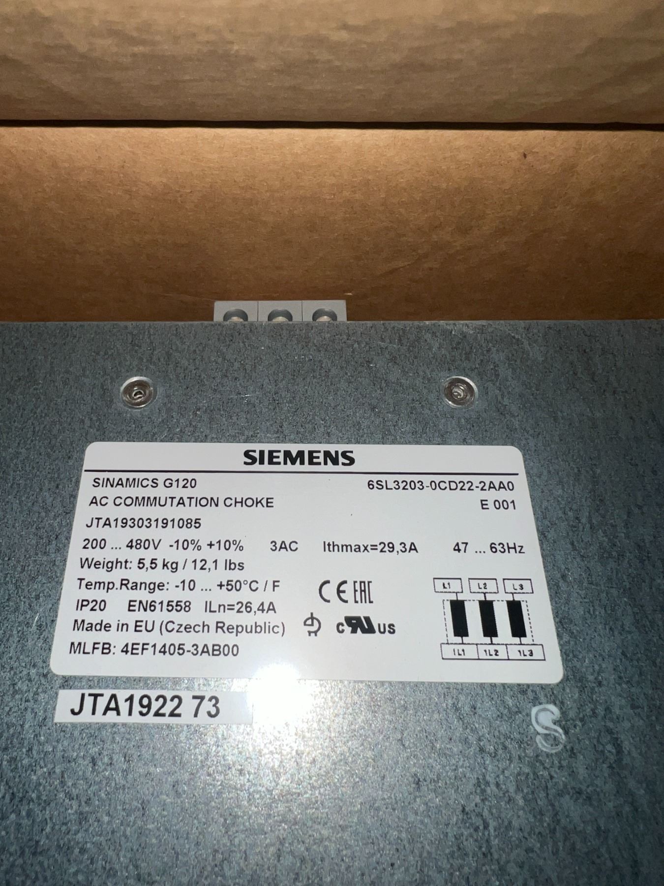 Siemens #6SL3203-0CD22-2AA0 Sinamics G120 Input Reactor
