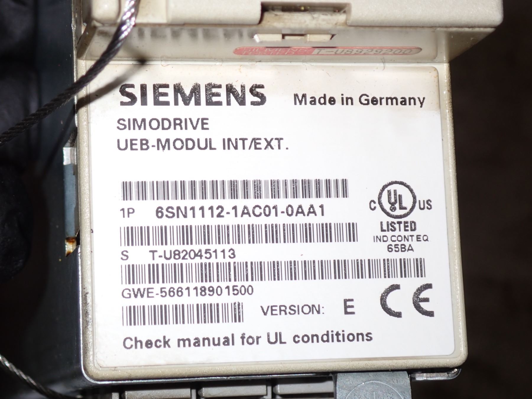 Siemens #6SN1112-1AC01-0AA1 Simodrive UEB-Modul Int/Ext.