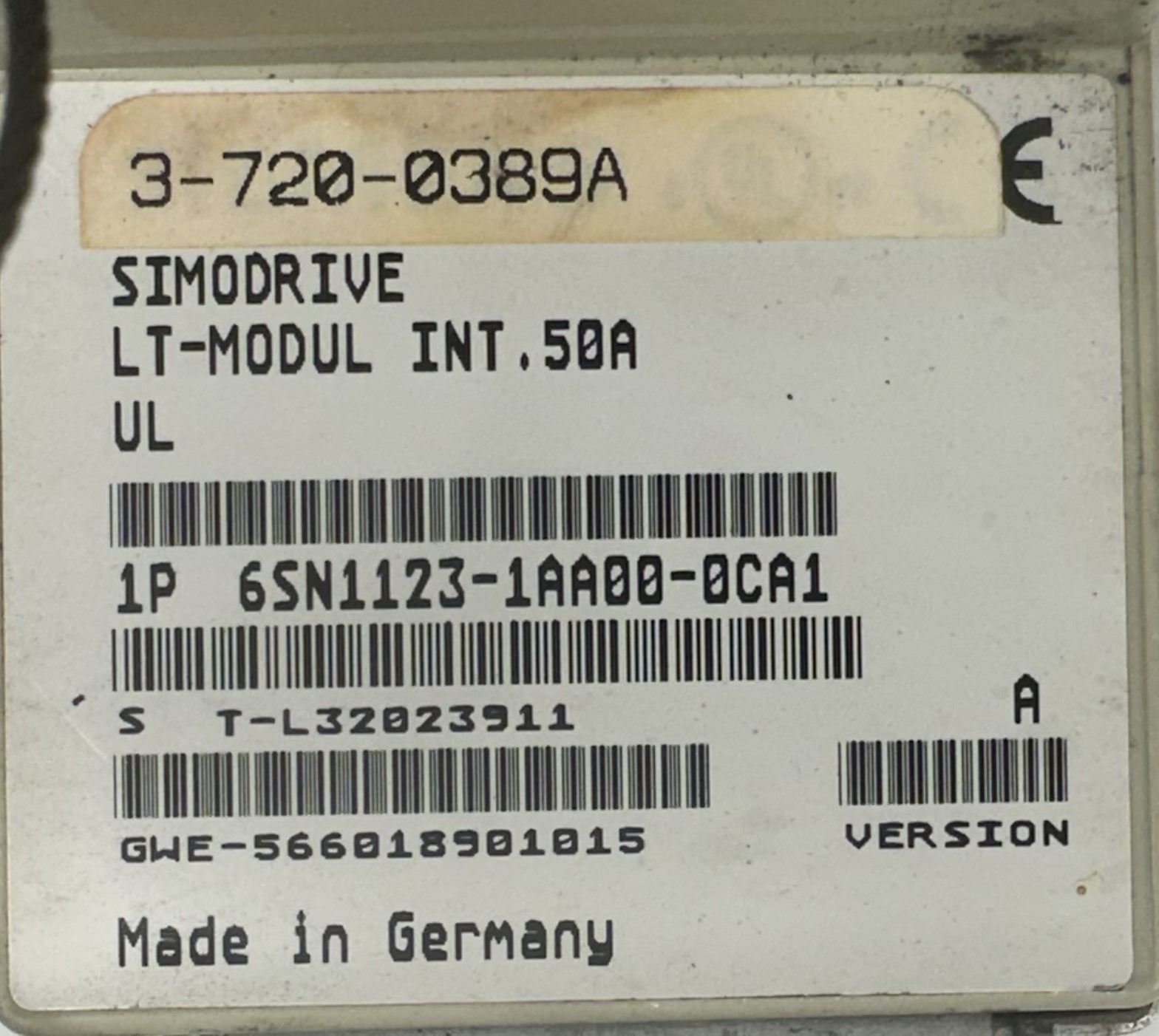 Siemens #6SN1123-1AA00-0CA1 SIMODRIVE LT-MODULE INT.50A