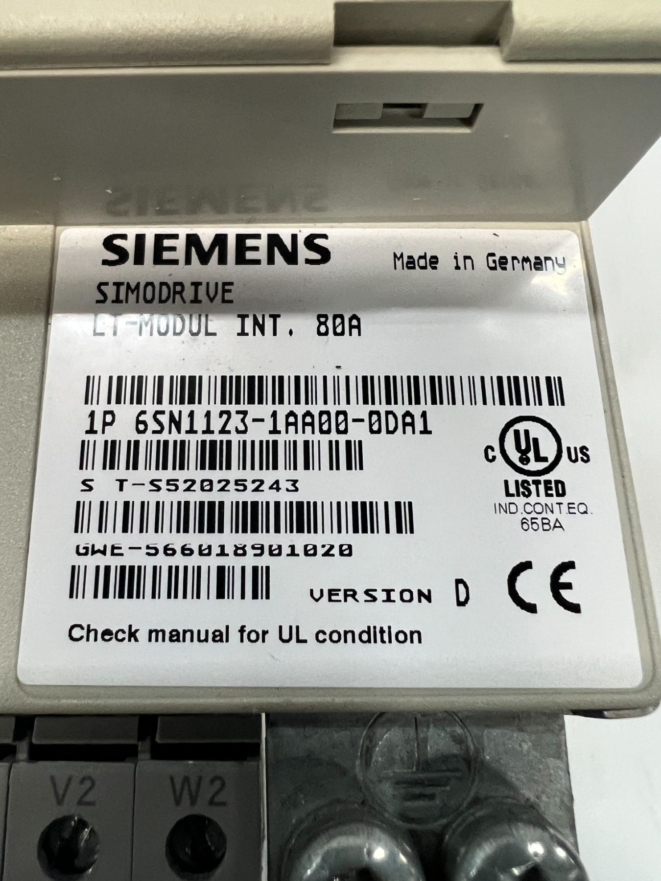 Siemens #6SN1123-1AA00-0DA1 SIMODRIVE LT-MODUL INT. 80A