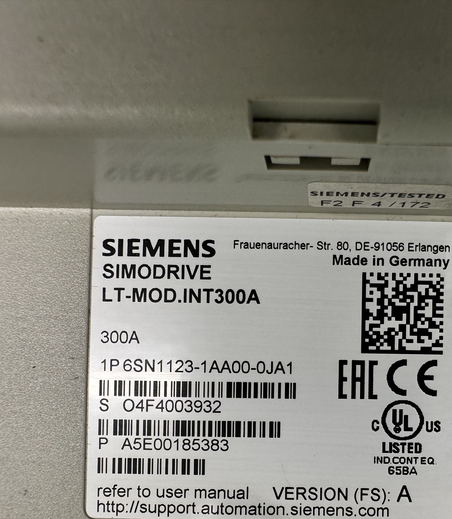 Siemens #6SN1123-1AA00-0JA1 SIMODRIVE LT-MOD INT .300A
