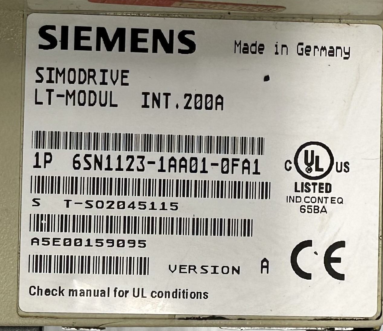 Siemens #6SN1123-1AA01-0FA1 SIMODRIVE LT-Module INT .200A