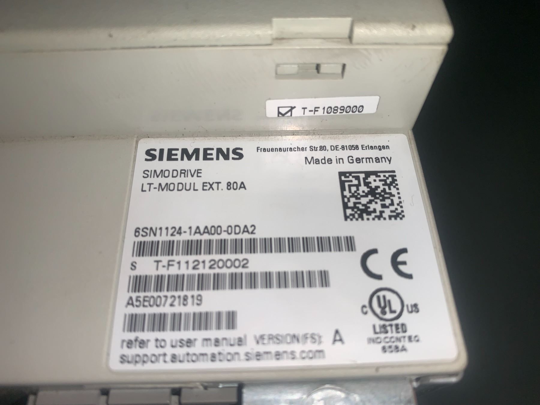 Siemens # 6SN1124-1AA00-0DA2 Simo Drive LT-Modul Ext. 80A