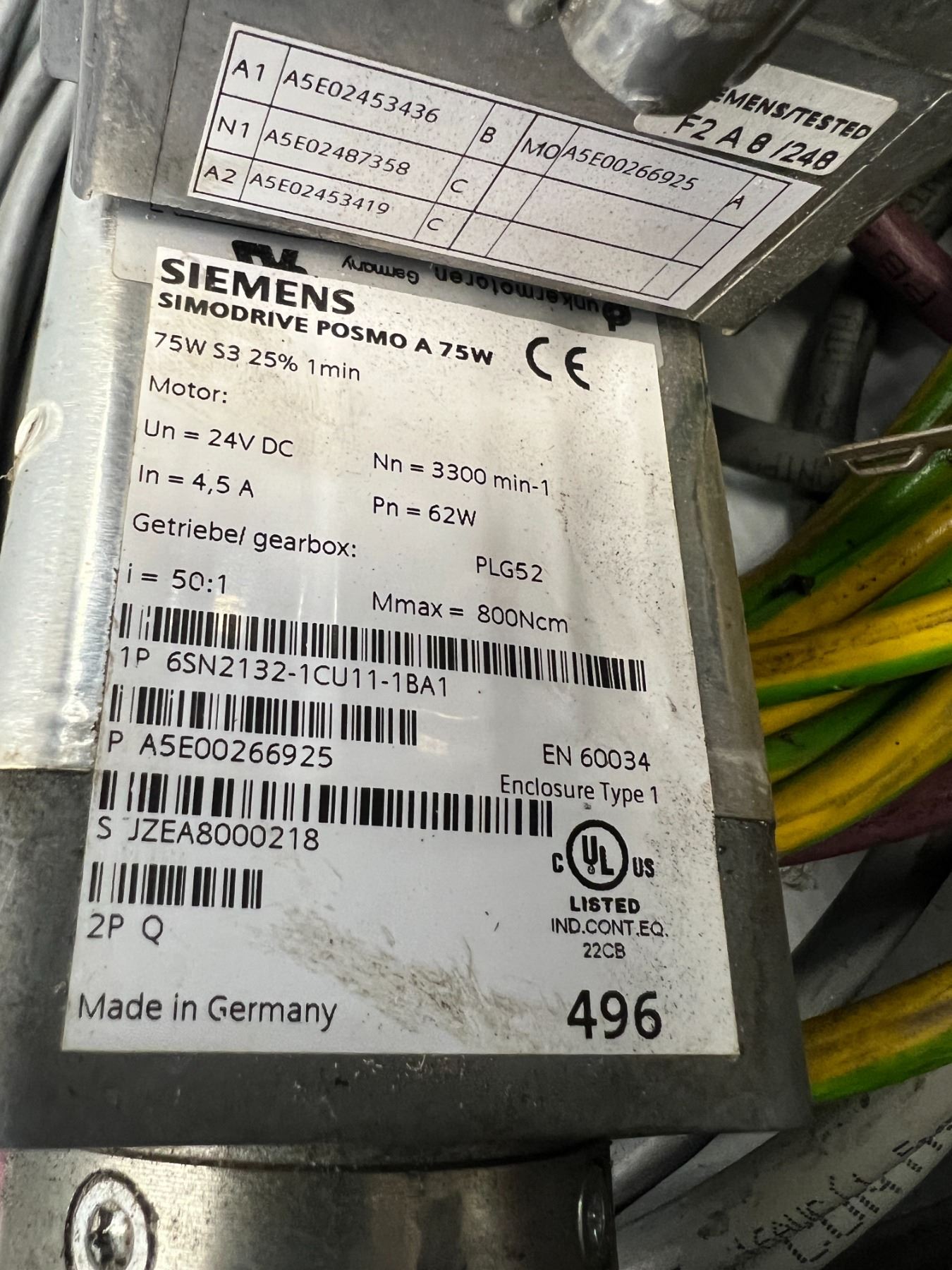 Siemens #6SN2132-1CU11-1BA1 SIMODRIVE POSMO A 75W +PLG52 Reducer