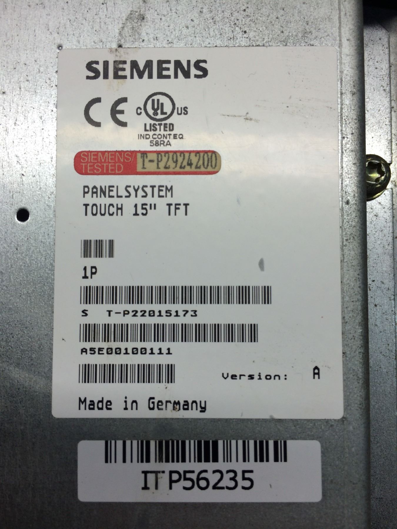 Siemens A5E00100111 Panel 15" Touch Panel System