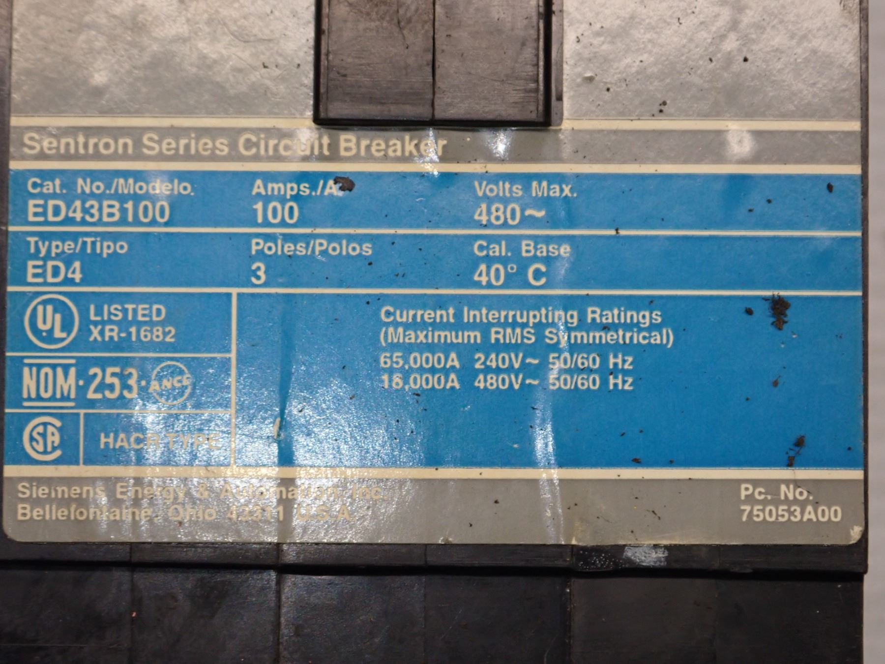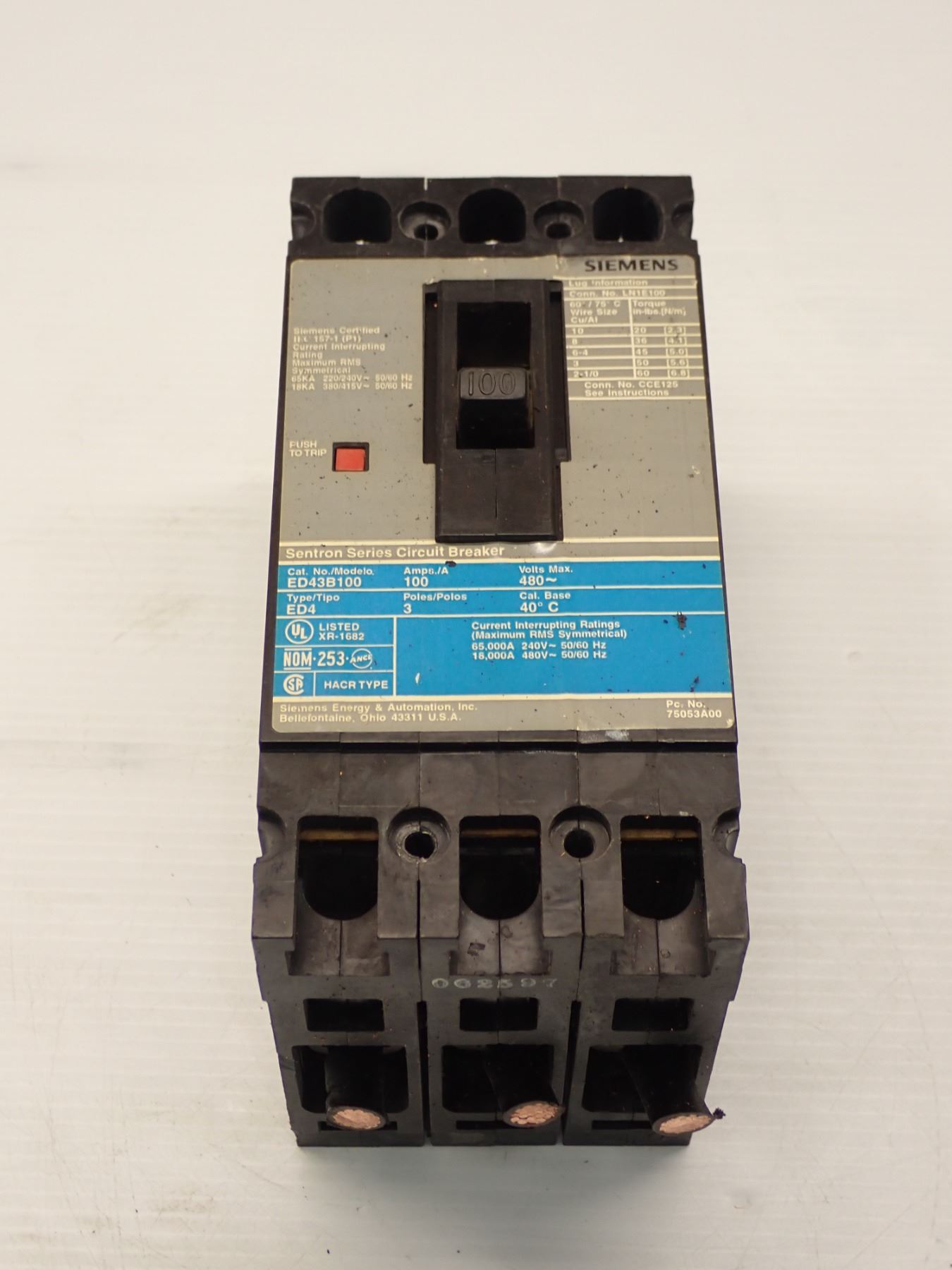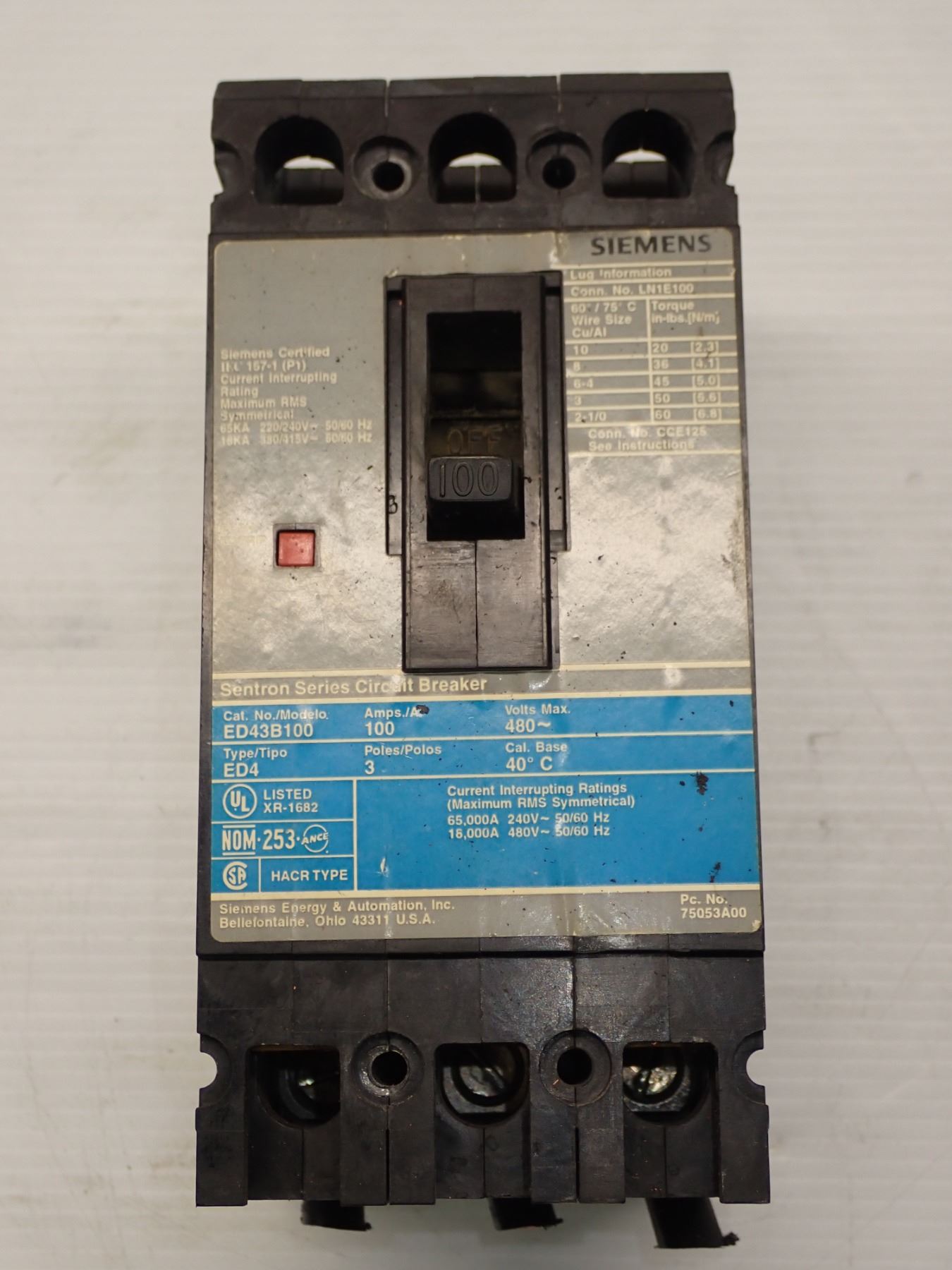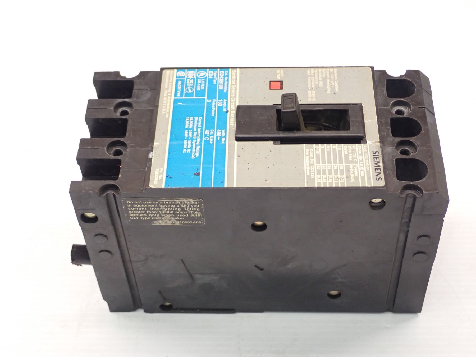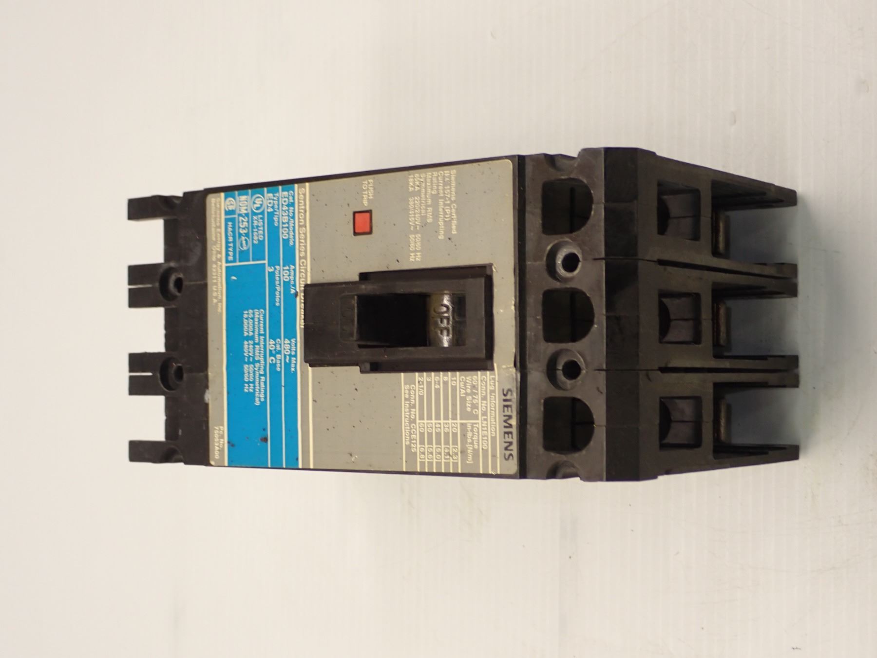 Siemens # ED43B100 Circuit Breaker