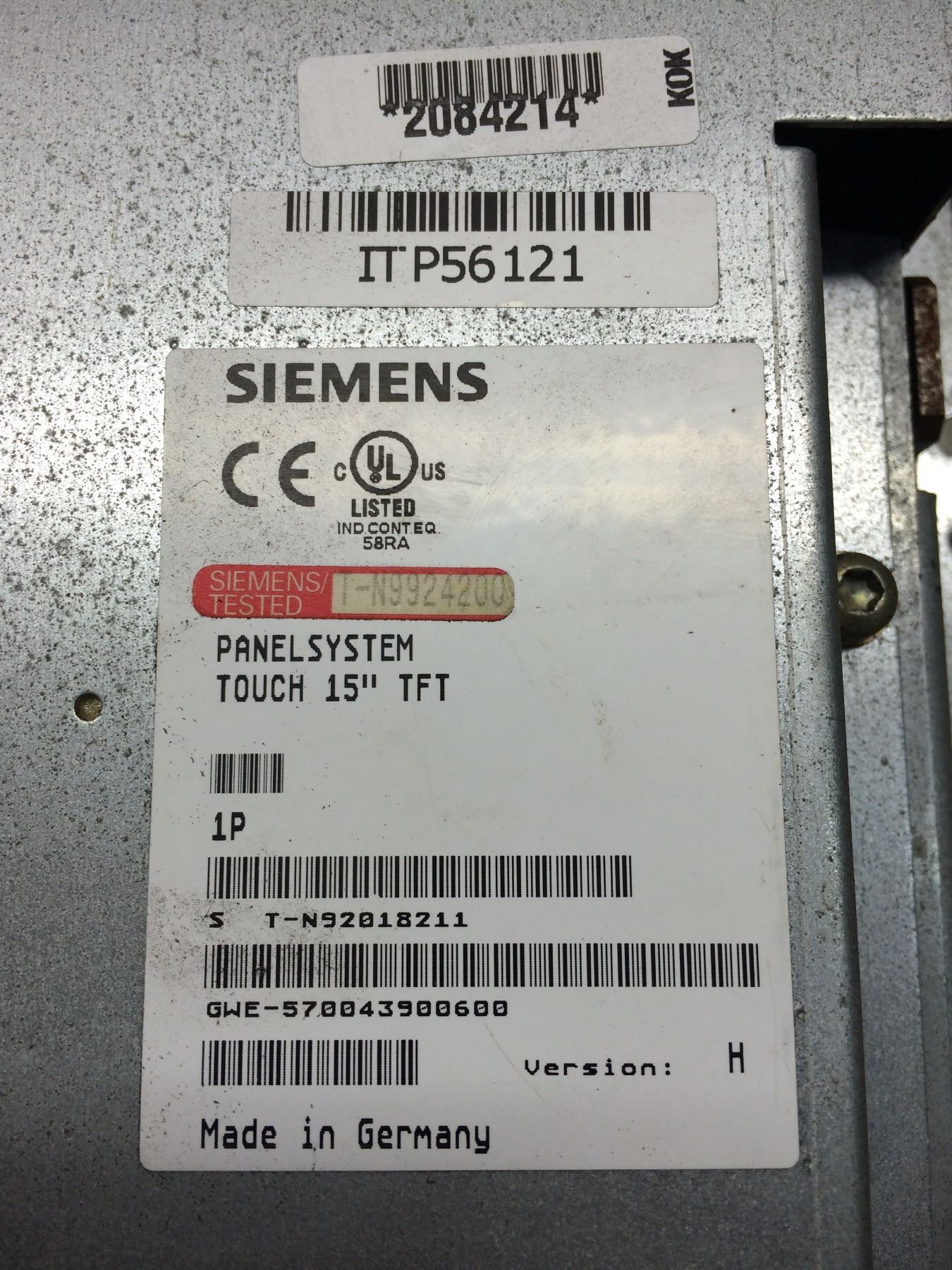 Siemens GWE-570043900600 Touch 15" Panel System