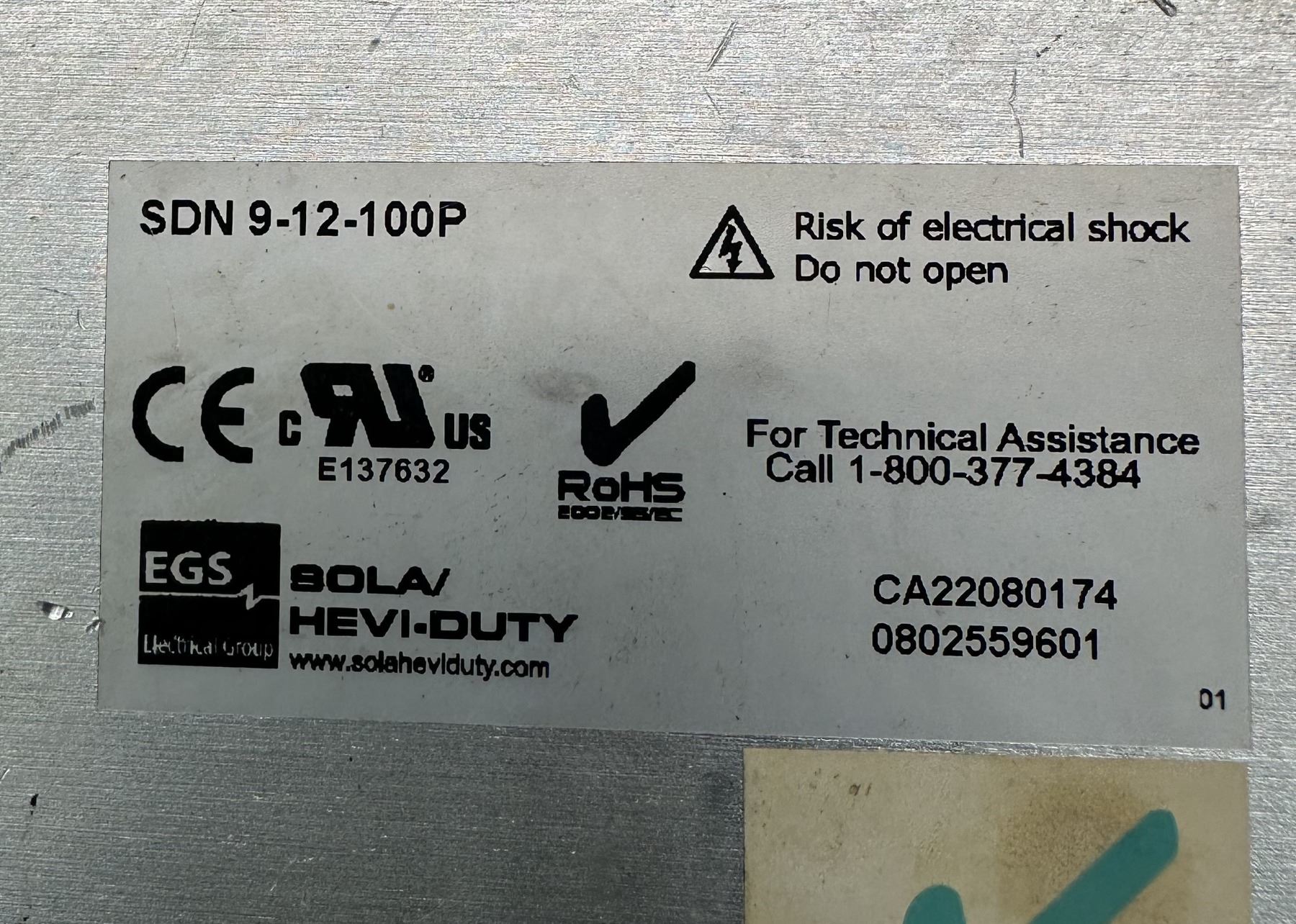 Sola #SDN 9-12-100P Power Supply