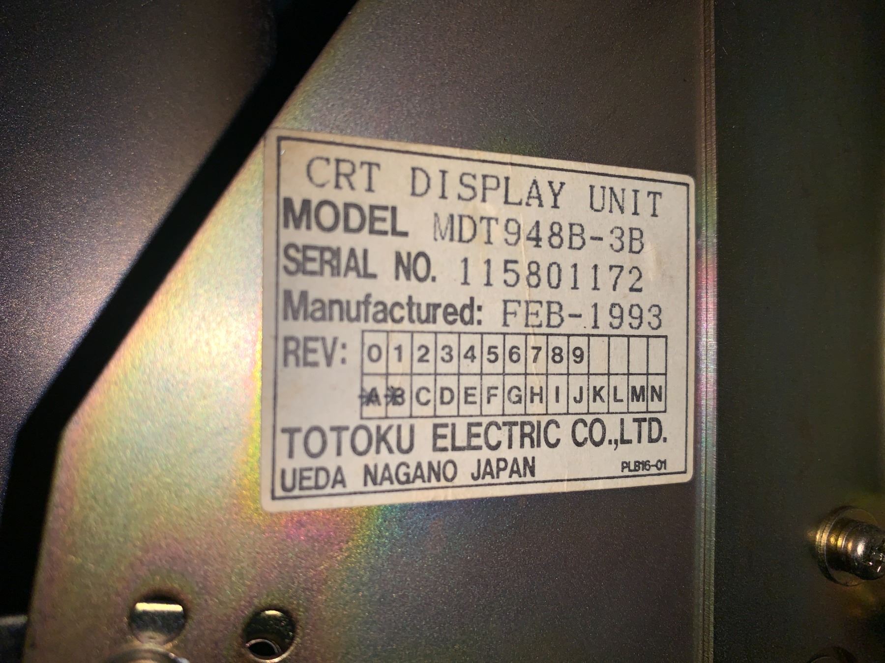 TOTOKU ELECTRIC #MDT948B-3B CRT Display Unit