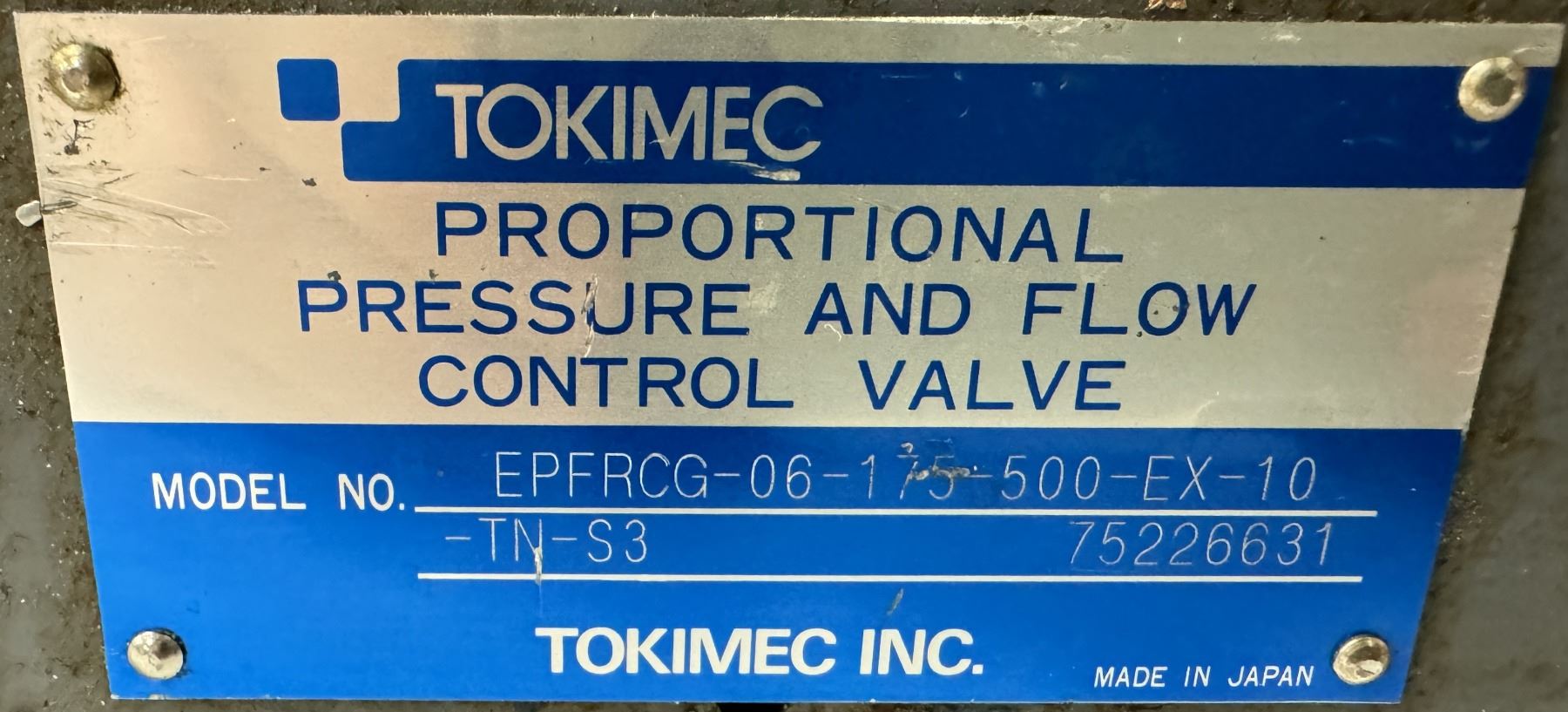 Tokimec #EPFRCG-06-175-500-EX-10-TN-S3 Valve