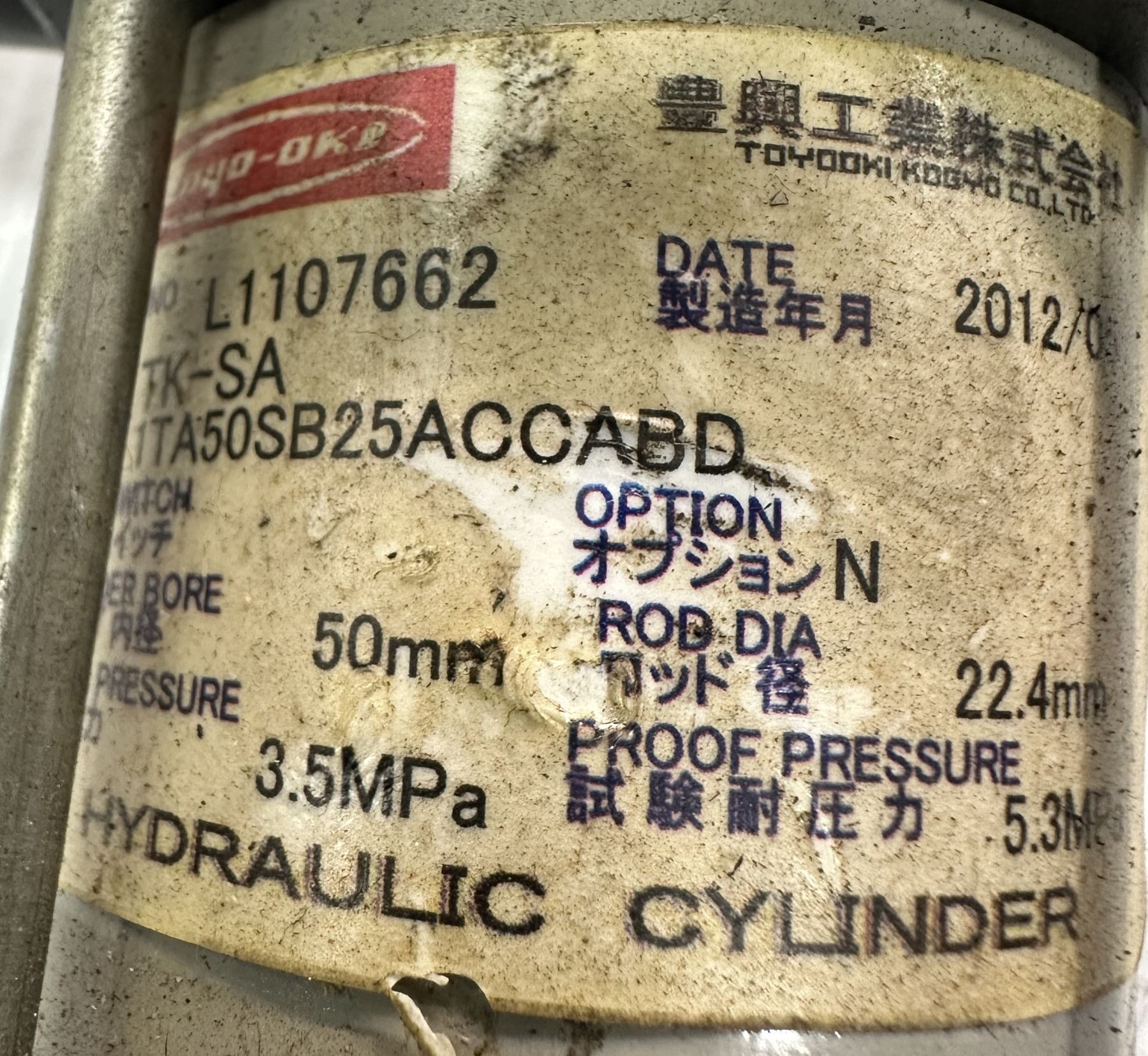 Toyo-Oki #TK-SA/1TA50SB25ACCABD 50mm Bore Double Acting Hydraulic Cylinder