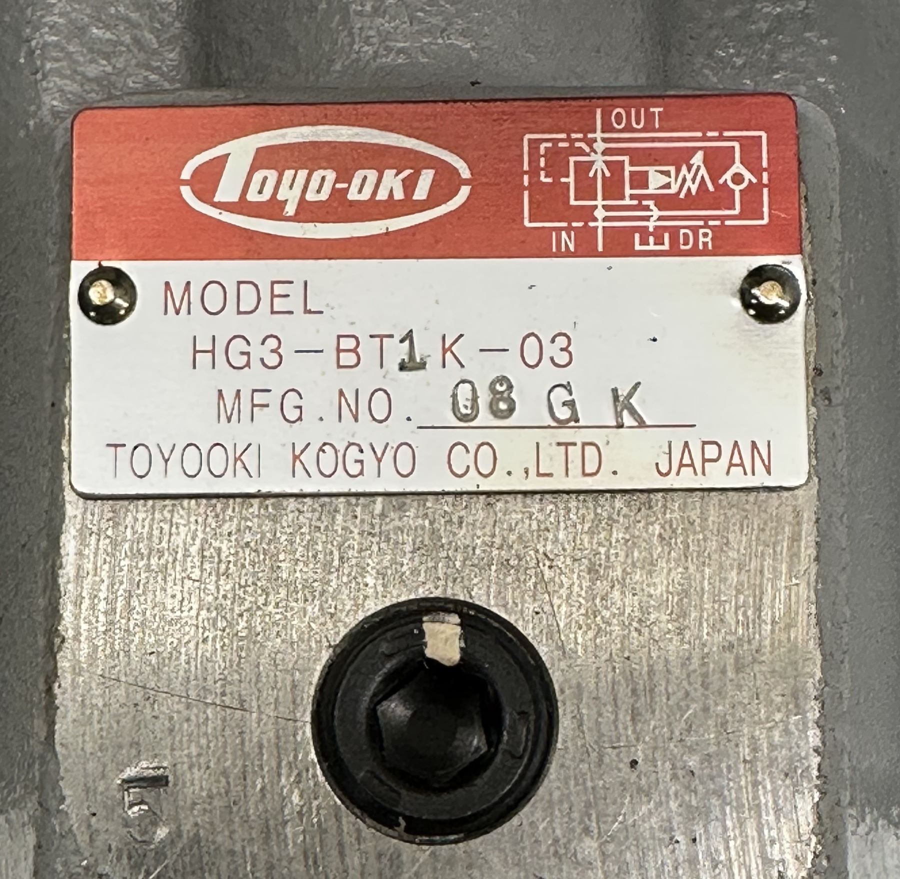 Toyooki Kogyo #HG3-BT1K-03 / 08-G-K Relief Valve